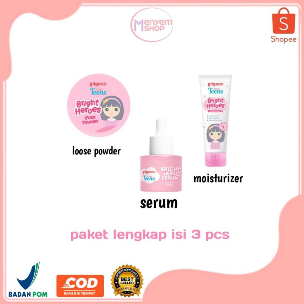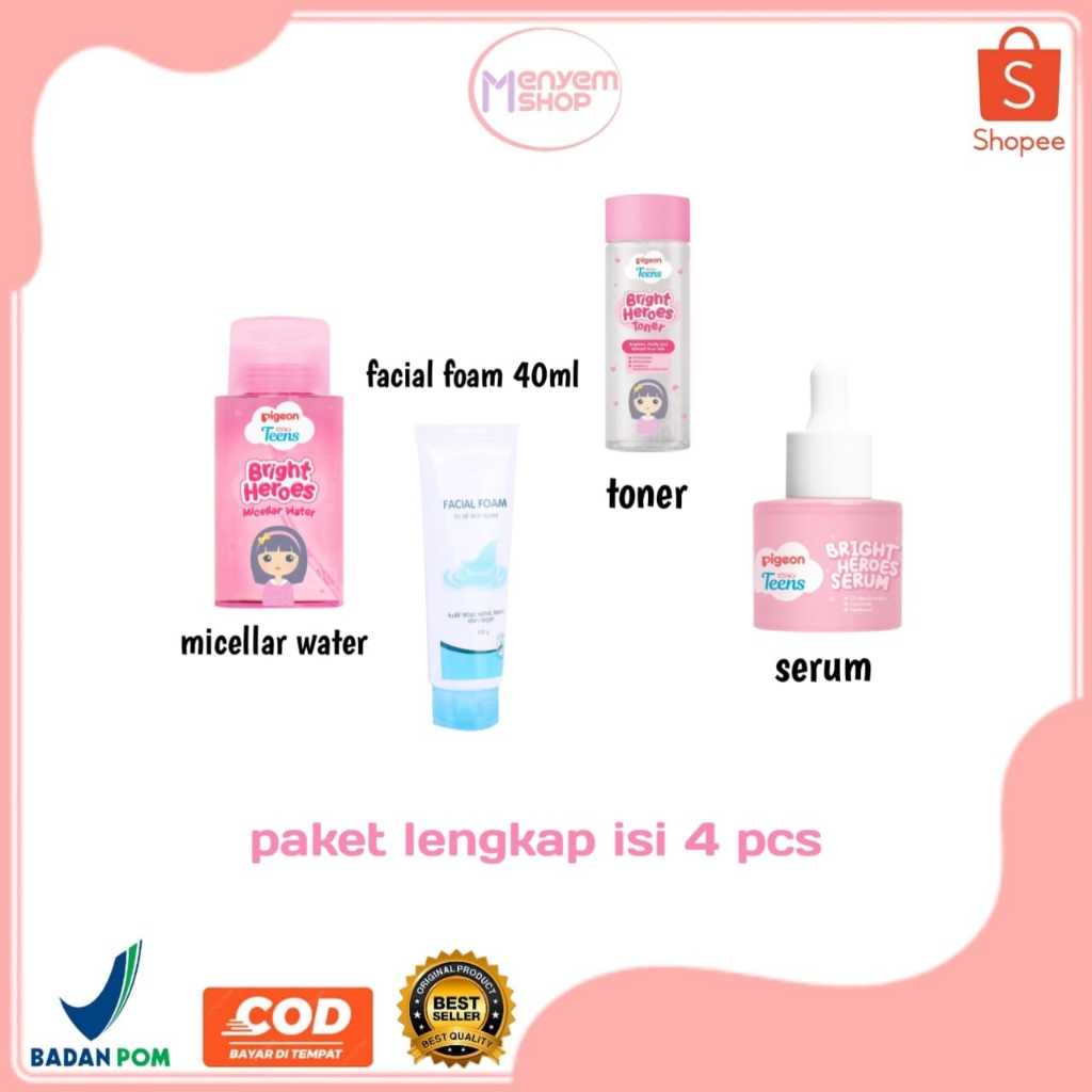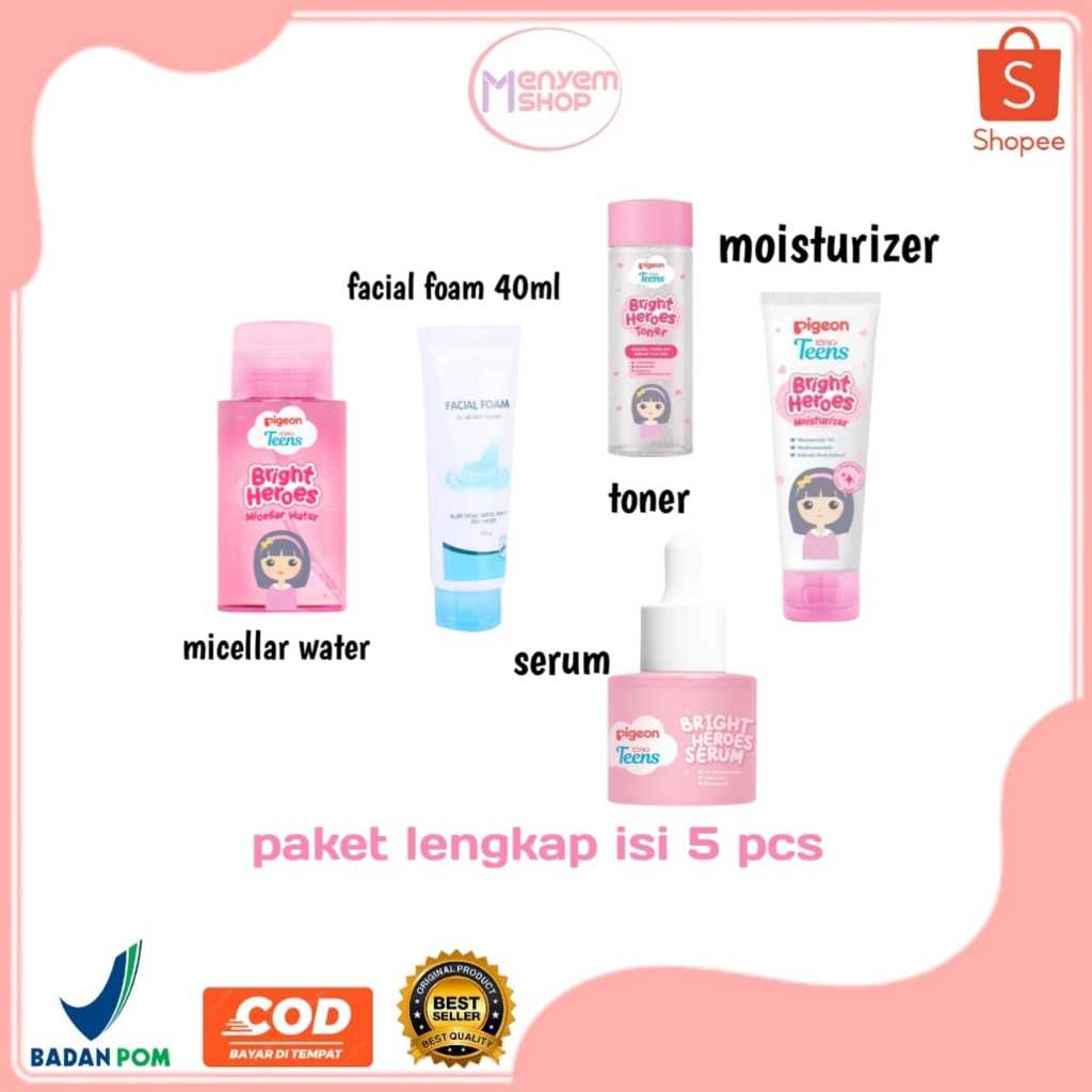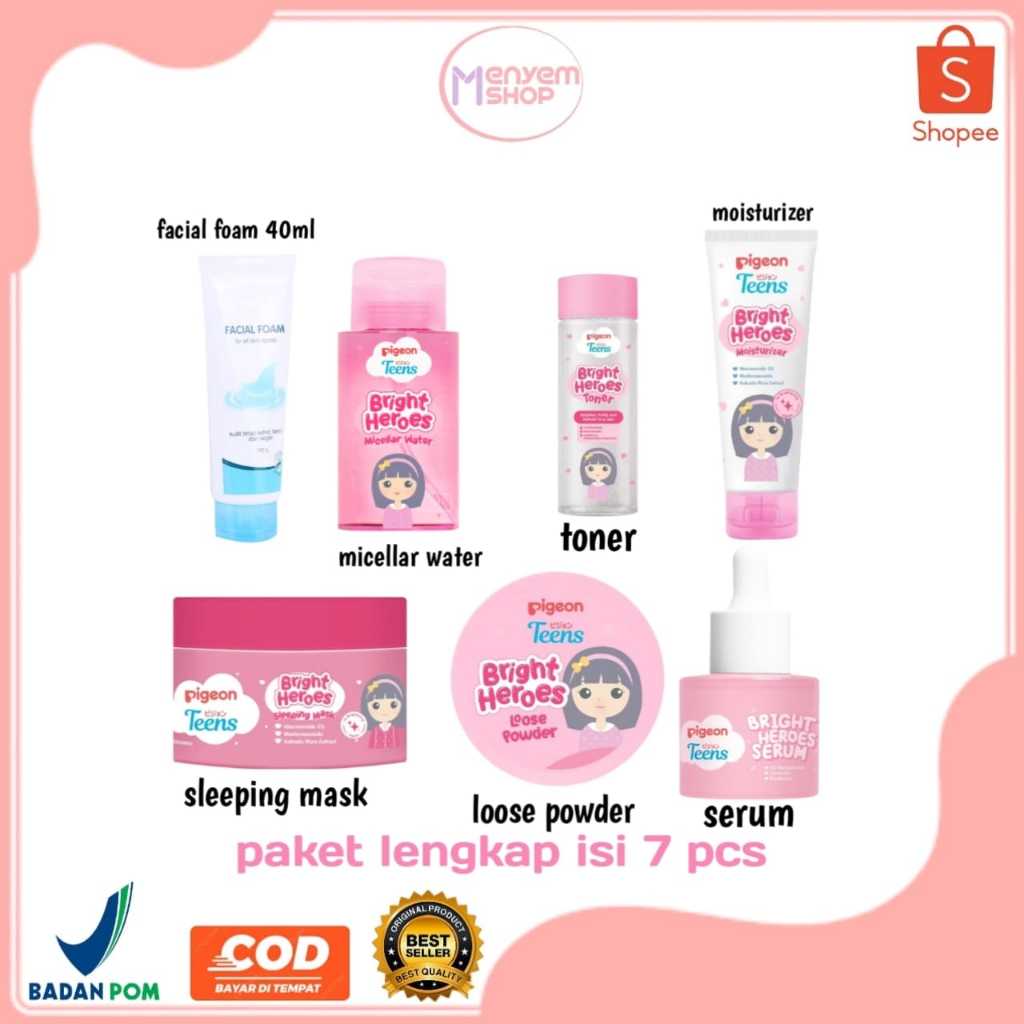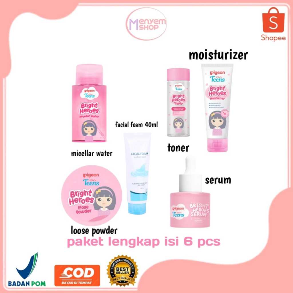 PAKET Pigeon Hemat Lengkap | Facial Foam 40ml | Micellar Water | Toner | Moisturizer | Sleeping Mask | Loose Powder | Serum