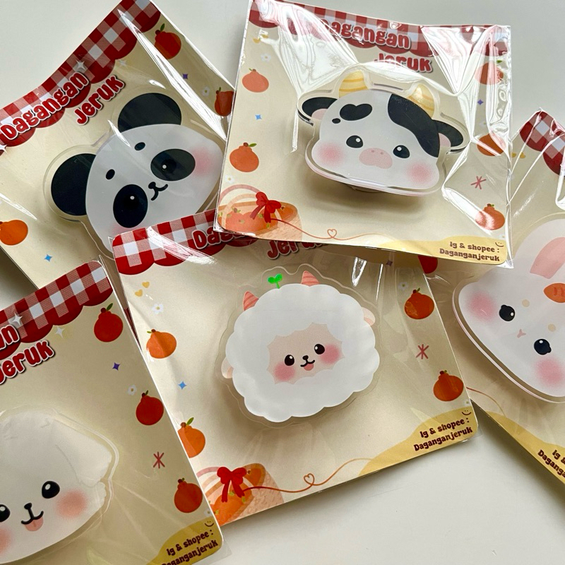 [NO MORE RESTOCK] Griptok Hewan Lucu Hewan Poodle Sapi Panda Piggy maltese Loppy Pororo Kucing Kelinci Beruang Popsocket by Dagangan Jeruk Popup Stand Acrylic Phone Holder Docking Smartphone