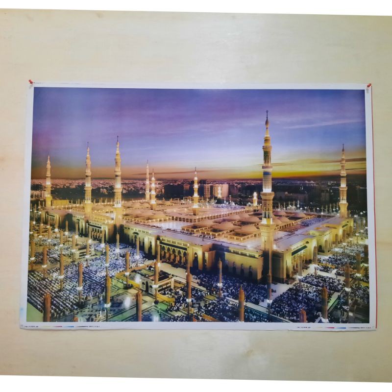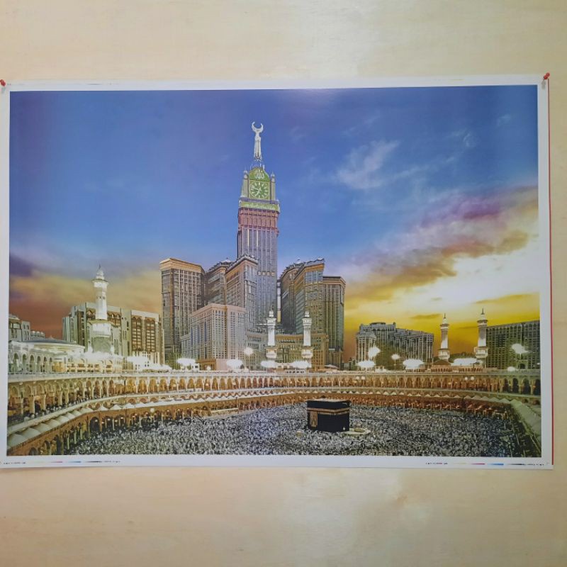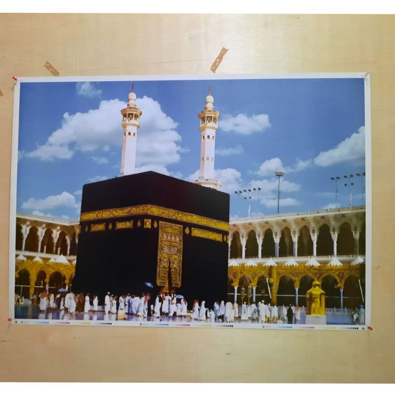 Grit ID Lukisan foto gambar poster Kaligrafi Mekah Ka'bah Kakbah kabah Madinah Nabawi uk 98 x 68 cm