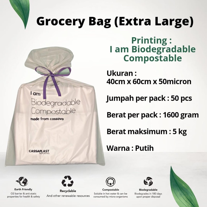 Grocery XL Plastik Packing Eco Friendly Kantong Singkong BIODEGRADABLE Ramah Lingkungan Kantong Size XL