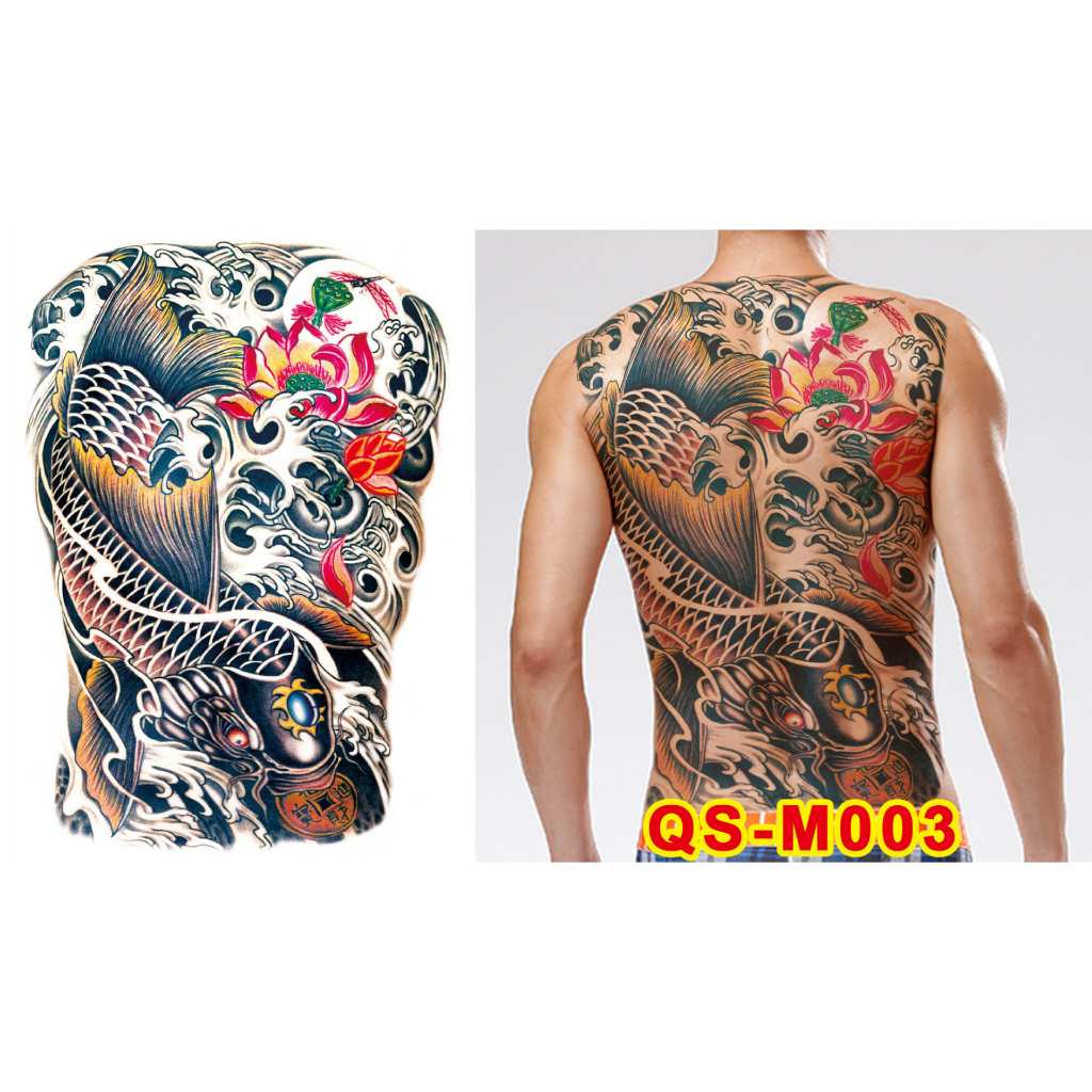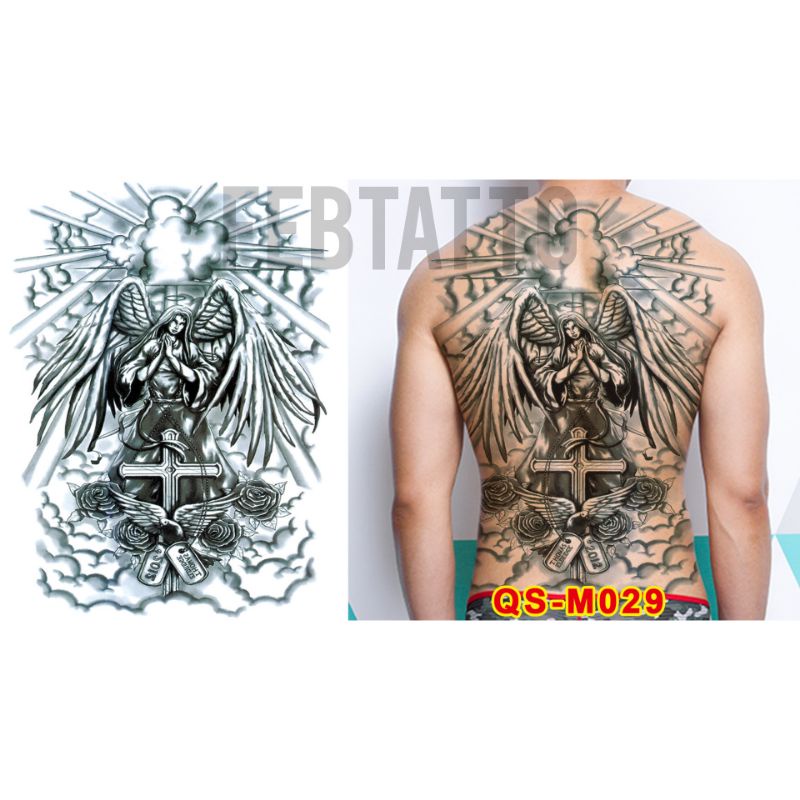 Grosir Stiker Tato / Tato Temporer FULL PUNGGUNG 34x48cm Tato perempuan topeng naga macan salib malaikat maut