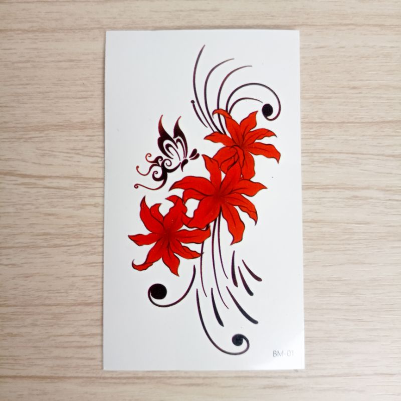 Grosir Termurah Tato Bunga Spider lily - Tatto Temporer Bunga berwarna Tahan Lama Tato temporary Stiker Tato Halal Dewasa