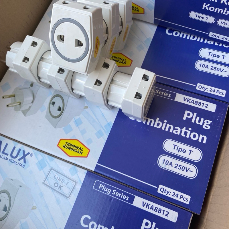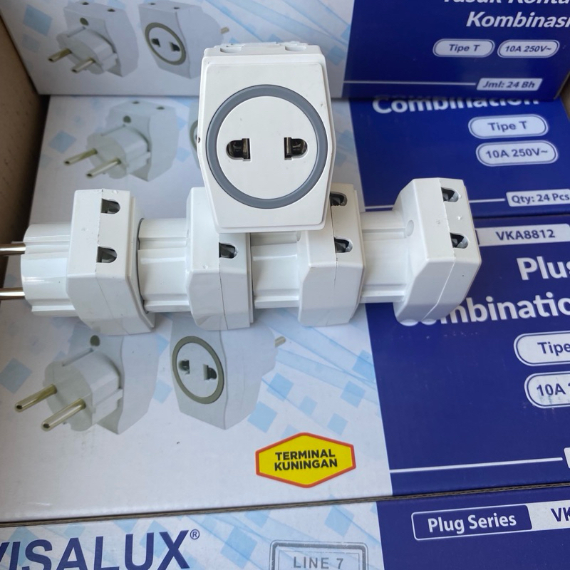 Grosir Visalux VKA8812/Box isi 24pcs Steker T Arde Multi Colokan Listrik 3 Lubang 10A