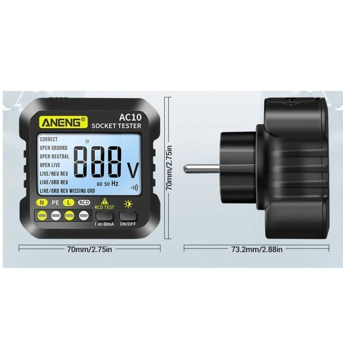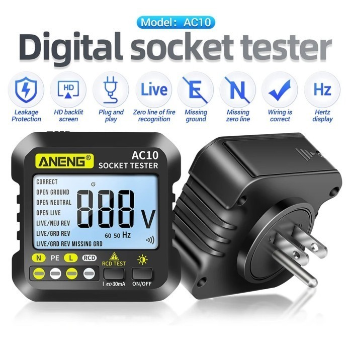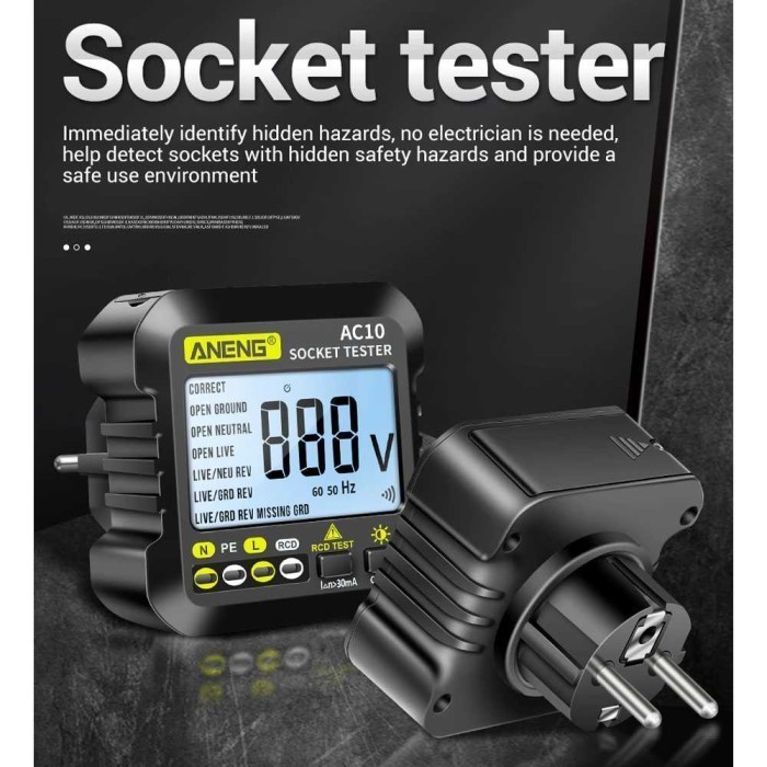 Tester Stop Kontak Listrik EU Plug RCD Check Voltage Detector Grounding Wire 90–250V LED Indikator Cek Instalasi Rumah Kantor Alat Uji Soket Listrik Aman Kebocoran Arus