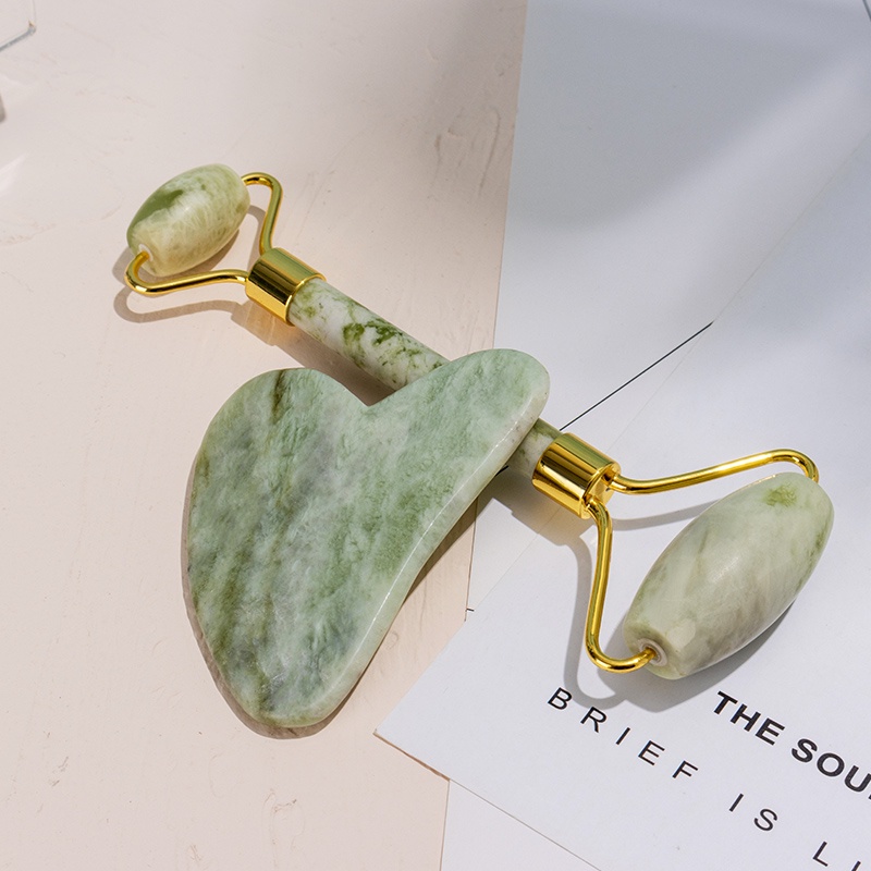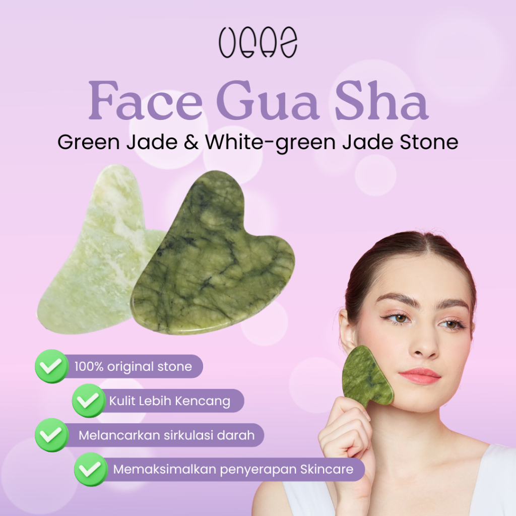 Ugaz - Guasha Wajah Green & White Green Jade | Alat Pijat Pengencang Roller Batu Alam Giok Asli Love