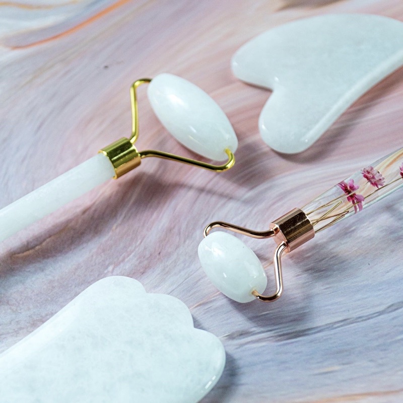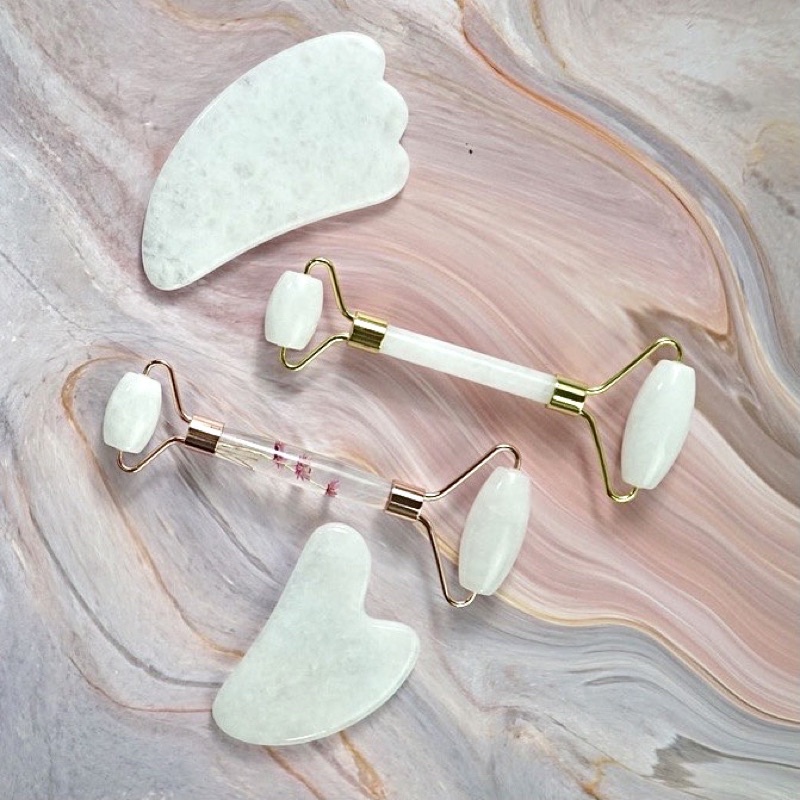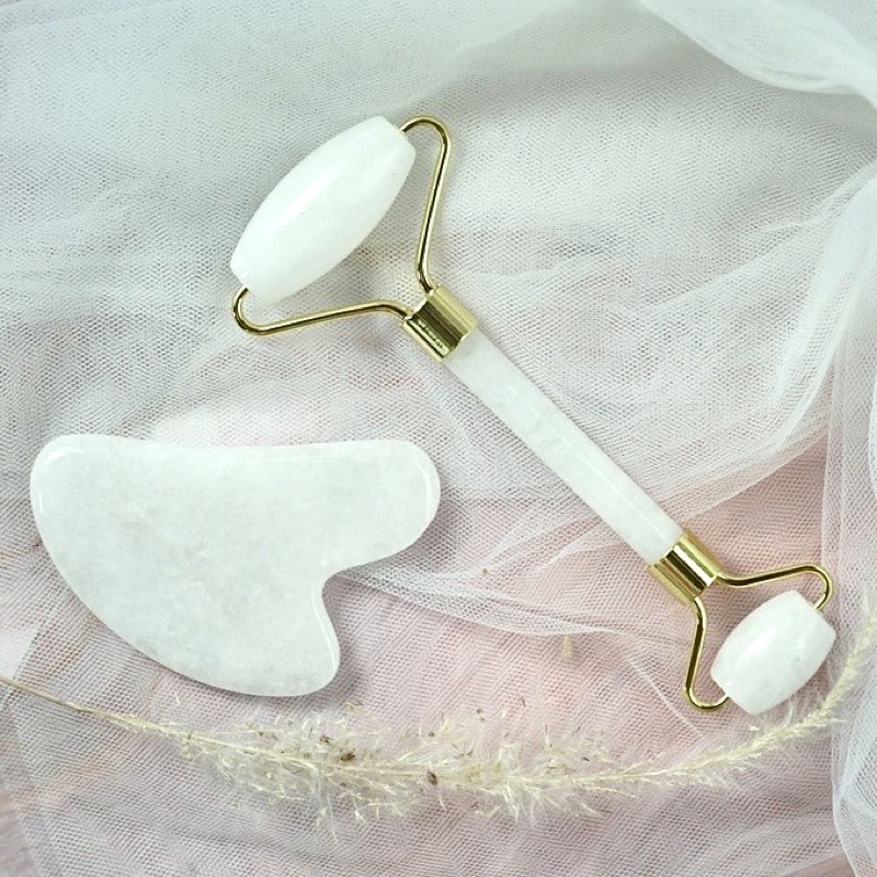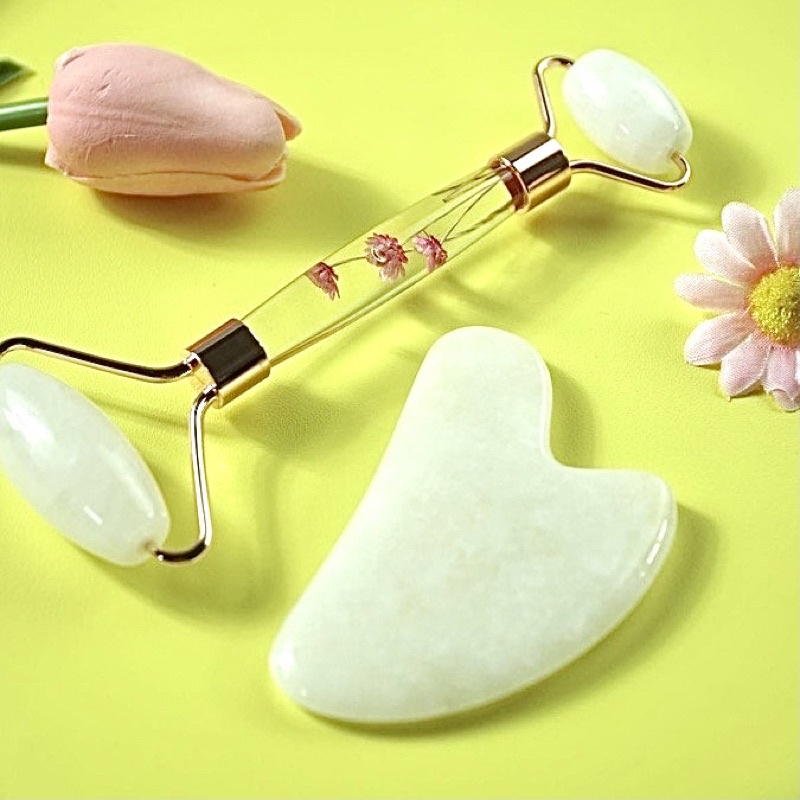 Ugaz - Guasha Wajah White Jade | Alat Pijat Pengencang Perawatan Roller Batu Giok Asli Love