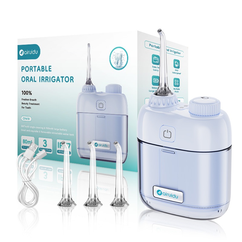 Airuidu Water Floss Electric Mini 3 Mode Pembersih Karang Gigi 4 Nozel Profesional CF410