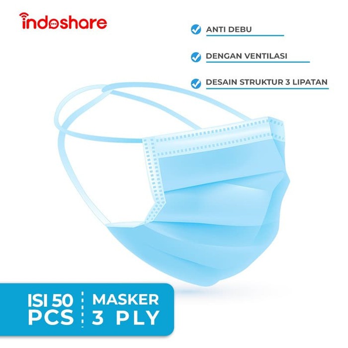Masker Headloop Hijab 3 Ply 3Ply Face Mask anti Debu Virus isi 50 Pcs - HIJAB FACEMASK