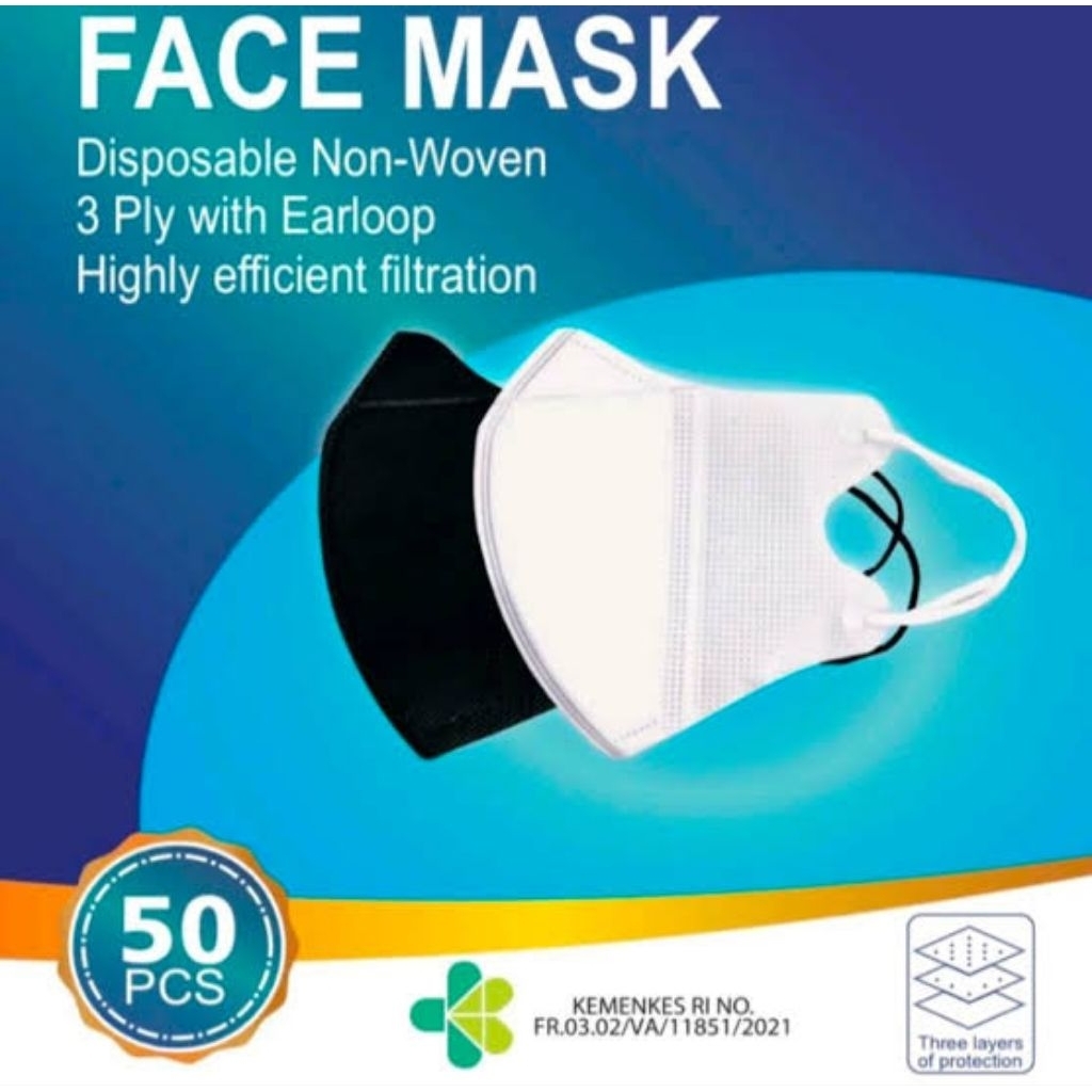 MASKET DUCBILL ISI 50 PCS MASKER KESEHATAN DEWASA WARNA HITAM DAN PUTIH