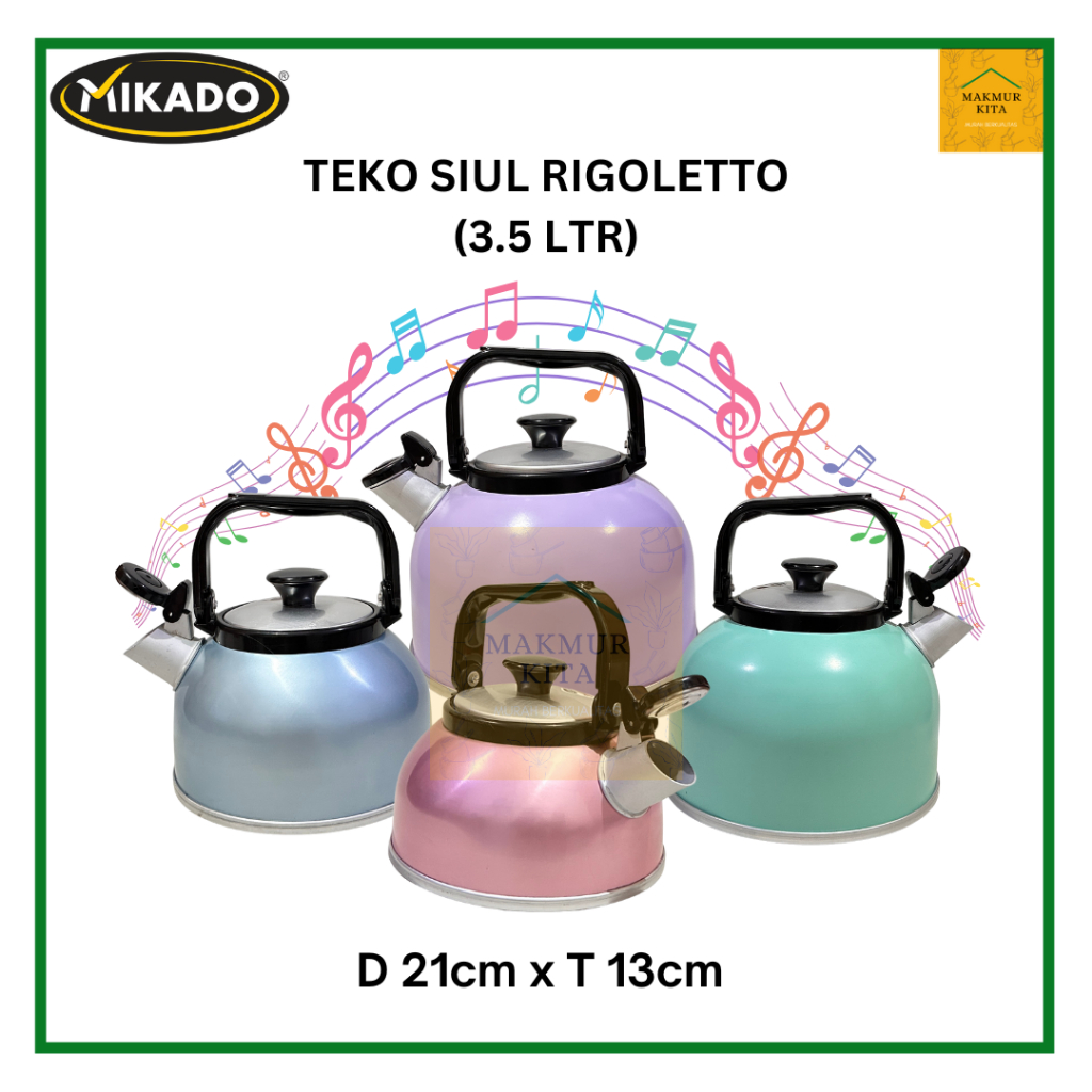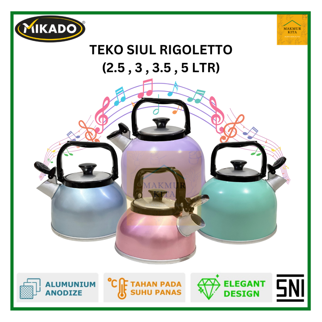 Teko Bunyi Siul Warna 2,5 - 5 Ltr Aluminium Mikado Maspion / Whistling Kettle Rigoletto Summer Anodize