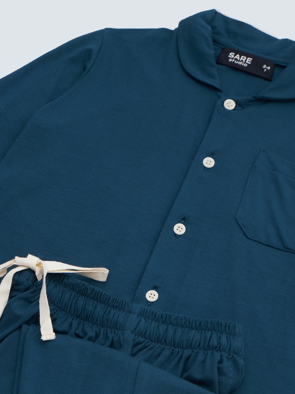 Piyama Set Anak Lengan Panjang Katun Ecovero | SARE Studio Sleepwear PRAYA PARIGI Kids in Teal