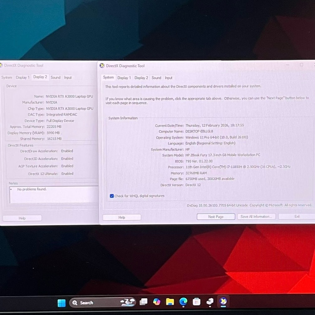 HP ZBOOK Fury 15 G8 i7 11850H Nvidia RTX A3000 6GB RAM 64GB SSD 1TB 17 inch Workstation