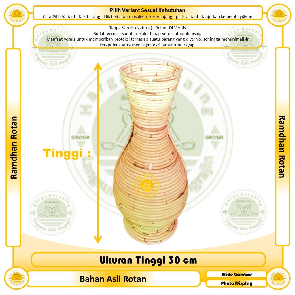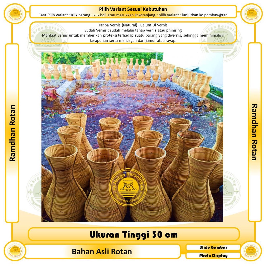 Guci Rotan Tinggi 30 cm - Vas Bunga Rotan 30 cm - Ramdhan Rotan - Pasu Bunga Bentuk Guci Bahan Rotan - Urn flower shape rattan material - Guci Mini - Guci Kecil - Tempat Vas Hias