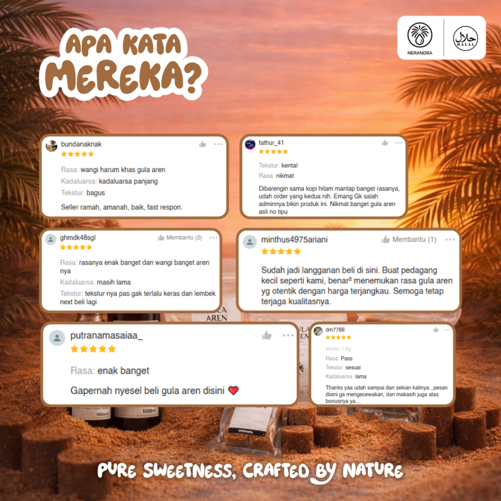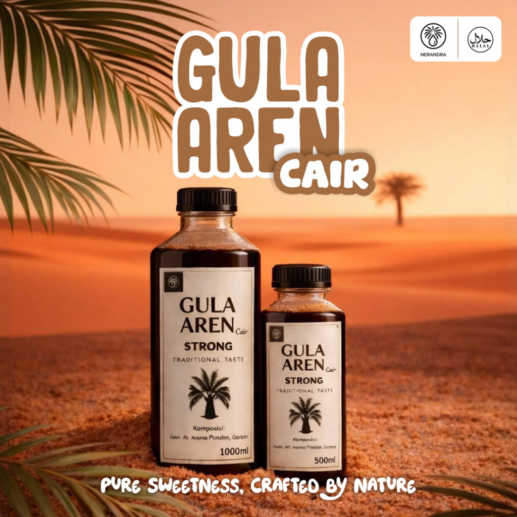 Gula Aren Cair ORGANIK Kental 1 Liter – Sea Salt & Pandan Asli – Untuk Kopi, Teh, Minuman & Baking – Nerandra