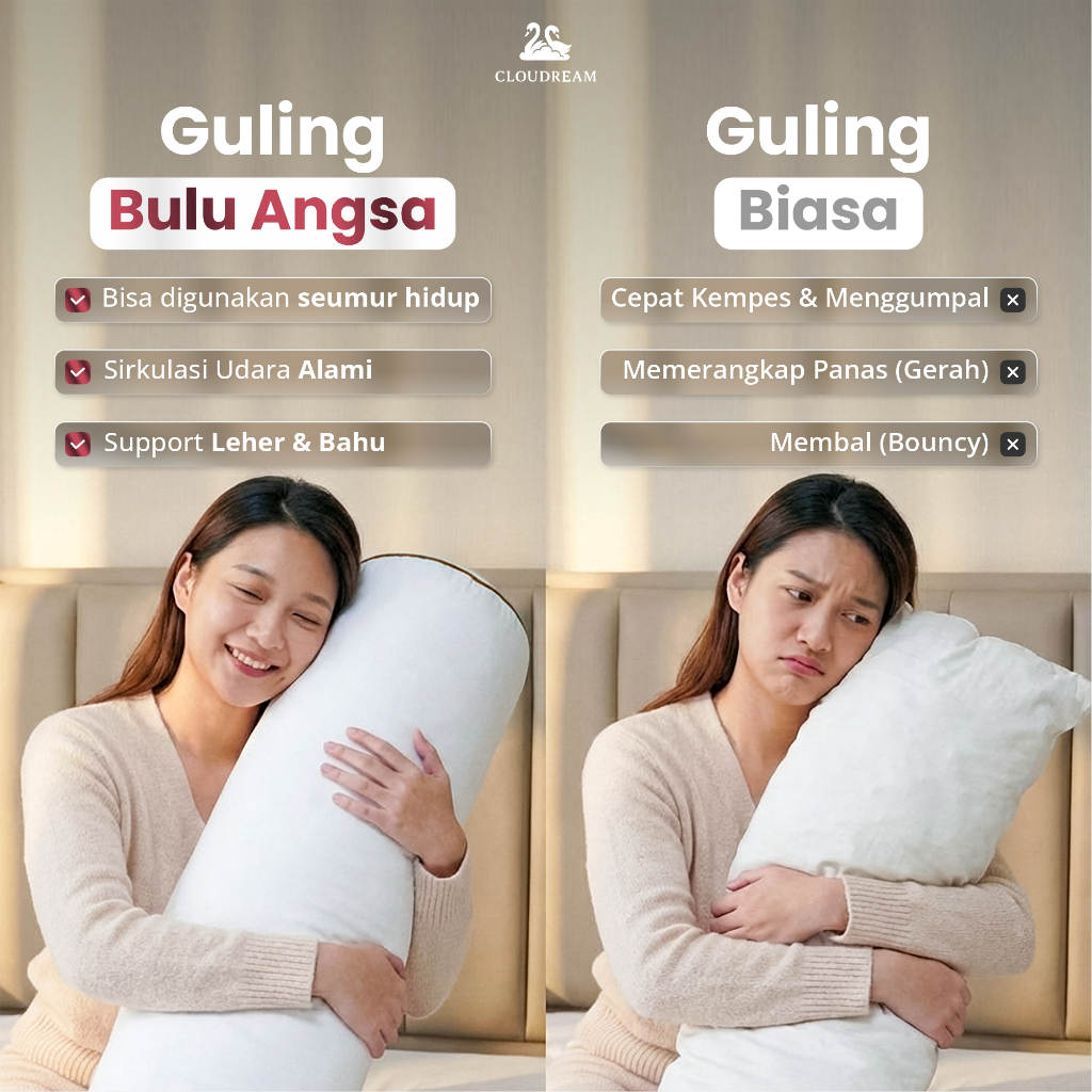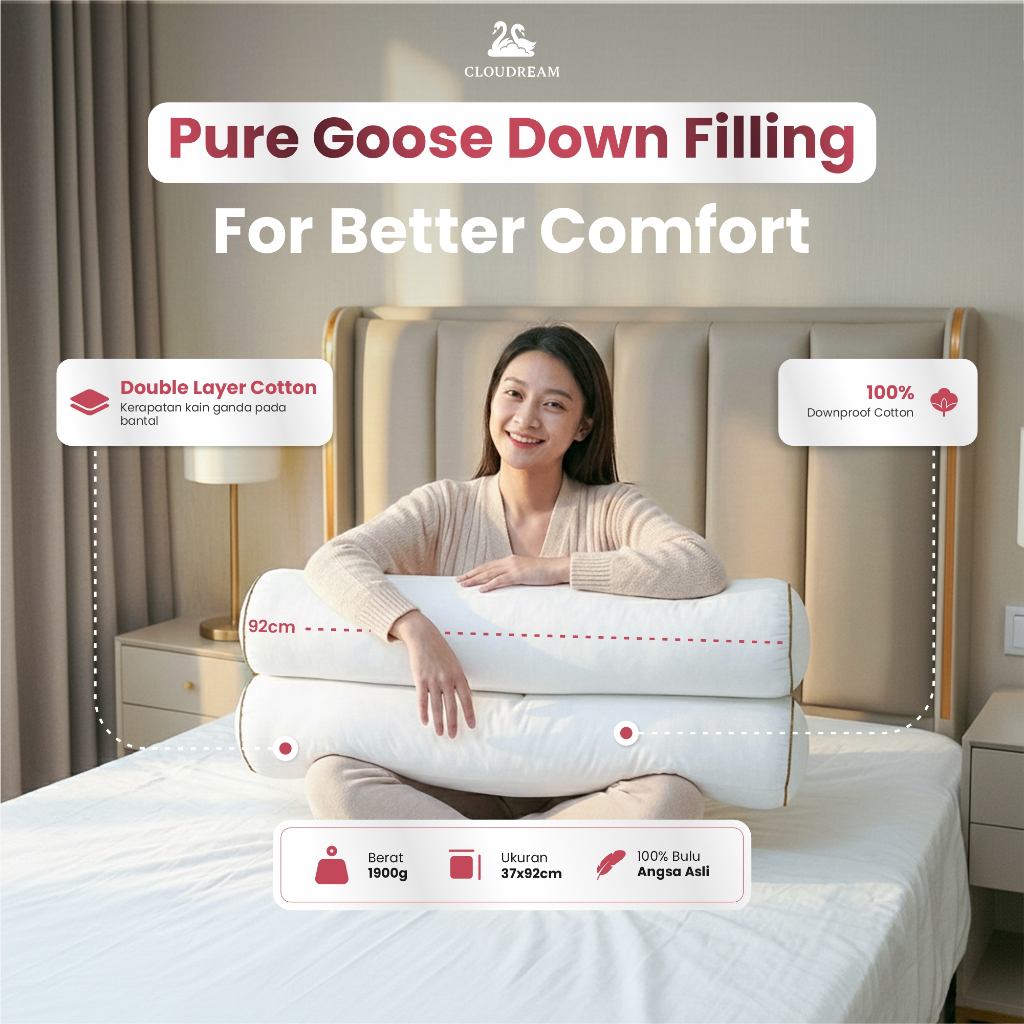 Cloudream Guling / Bolster Bulu Angsa Asli, Guling Empuk Hotel Bintang 5, Type Marriott (Soft)