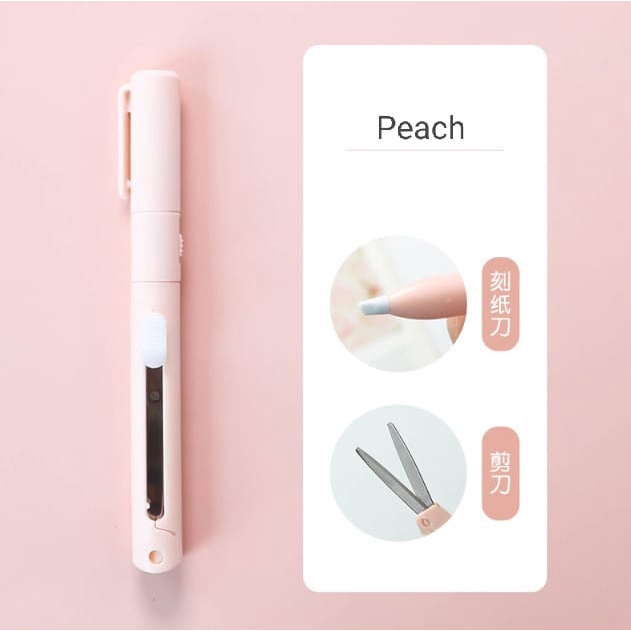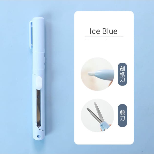 Gunting Cutter 2 in 1 Macaron / Gunting kertas / Gunting Multifungsi / Gunting Bentuk Pulpen / Travel size