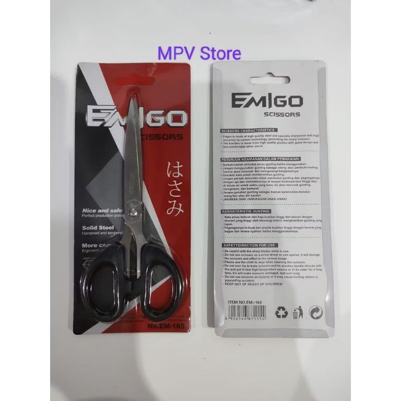 Gunting Kertas Besi Baja Warna Gagang Hitam Sedang 16cm Emigo