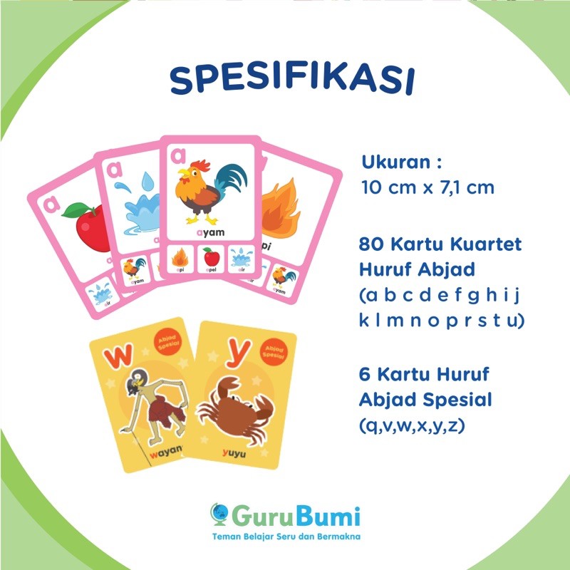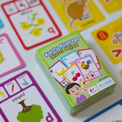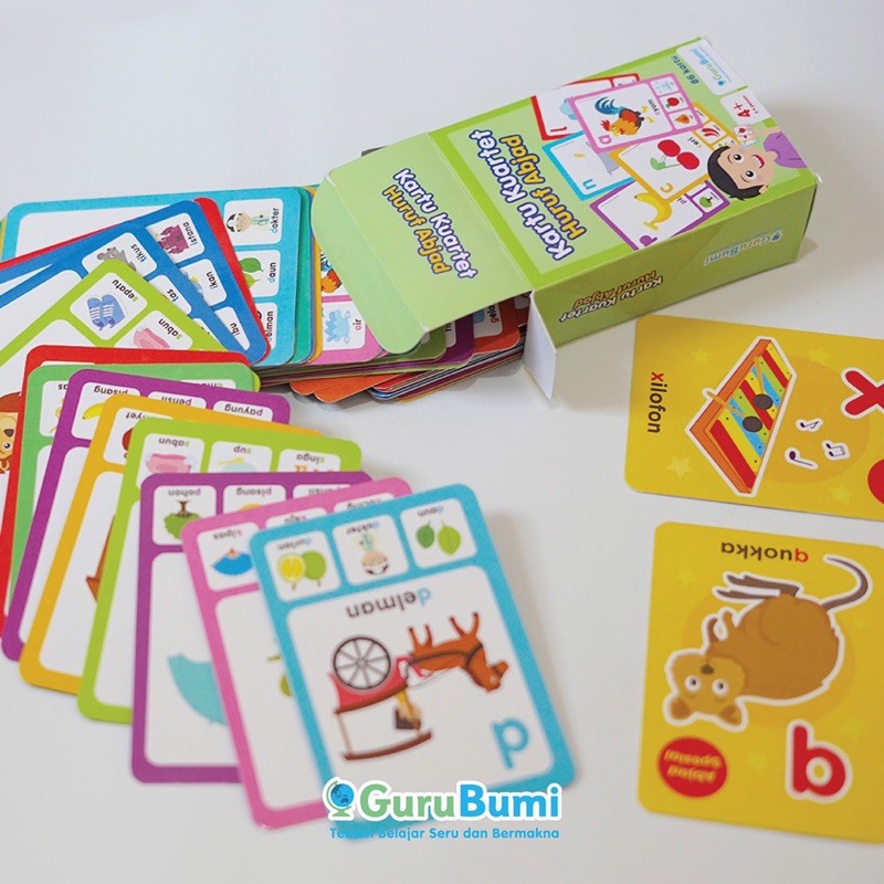 Gurubumi Kartu Permainan Kartu Edukasi Kartu Bergambar Kartu Belajar Anak: Kartu Kuartet Huruf Abjad