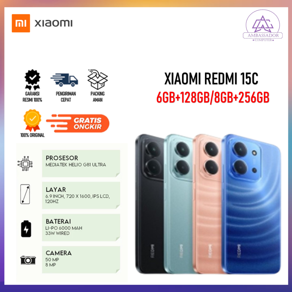 Xiaomi Redmi 15C 6gb/8gb 128gb/256gb GARANSI RESMI Battery 6000 mAh Android 15