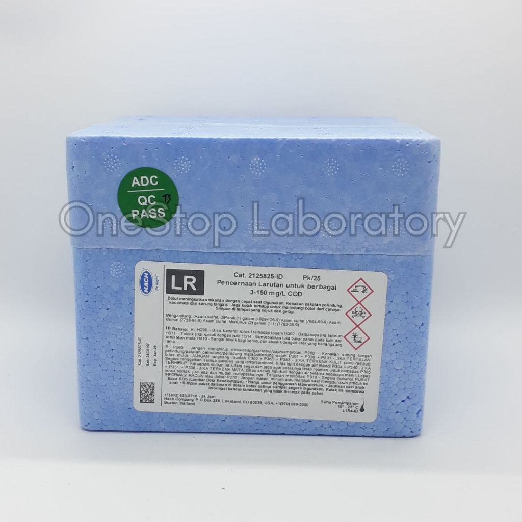 HACH 21258-25 COD Reagent LR Digestion Vials, 3-150 mg/L, pk/25 2125825