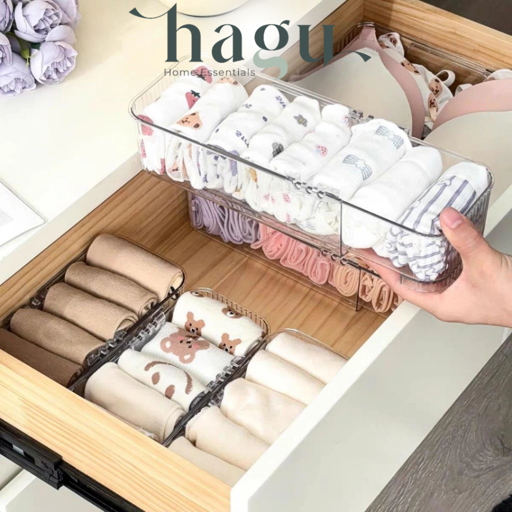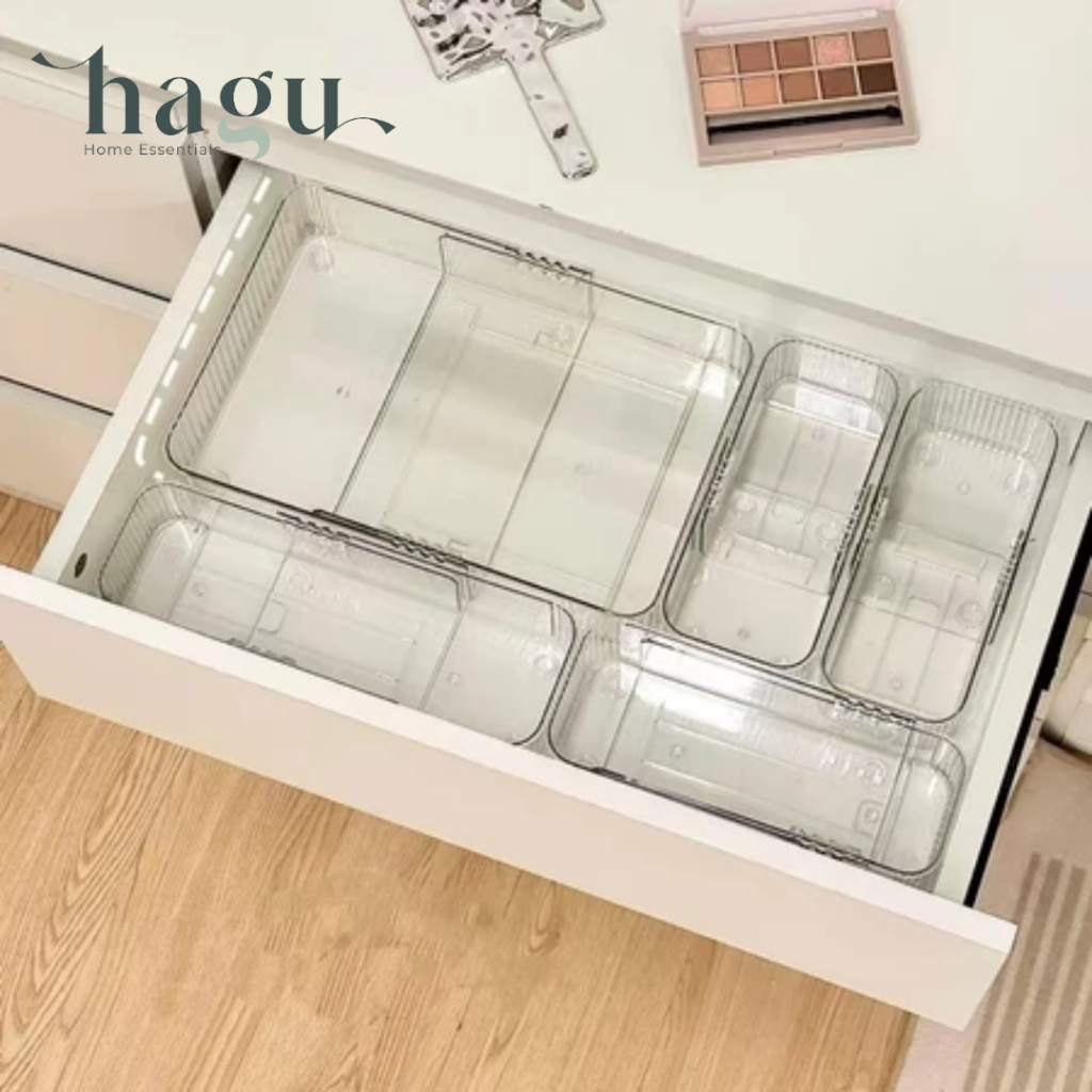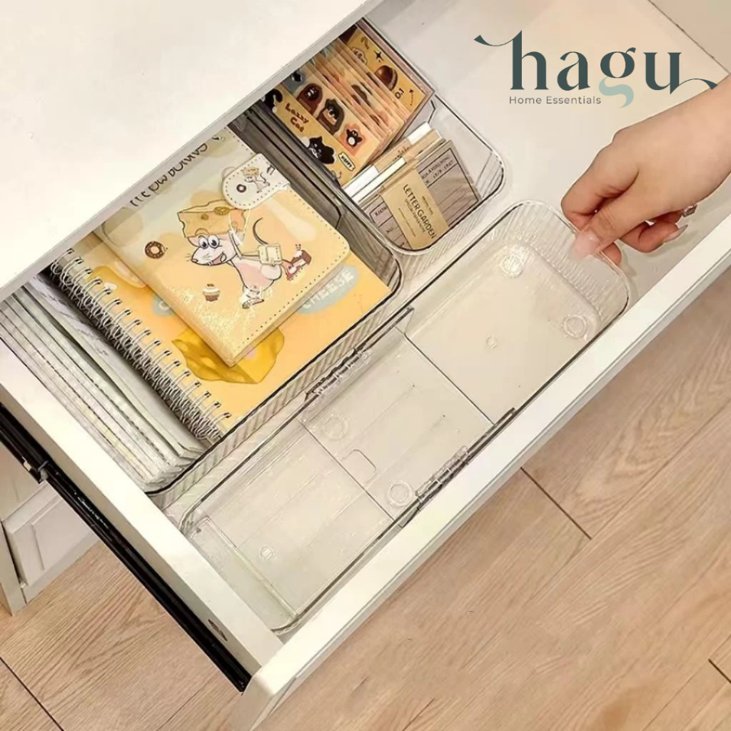 HAGU - HIMO Wadah Lemari Alat Kantor Perlengkapan Penyimpanan Sendok Garpu Multifungsi Organizer Sekat Pen Pensil Organiser Laci Alat Dapur Minimalis Wadah Alat Tulis Bening