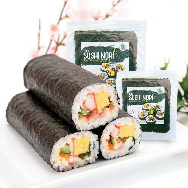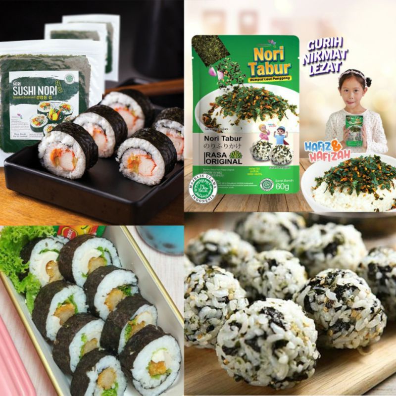HALAL- Nori Tabur Rumput Laut Panggang 60g Dan Nori 10 Lembar Ukuran Besar Nori Sushi Onigiri Bento Viral Bekal Anak Nasi Kepal
