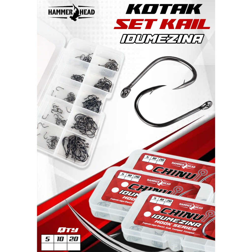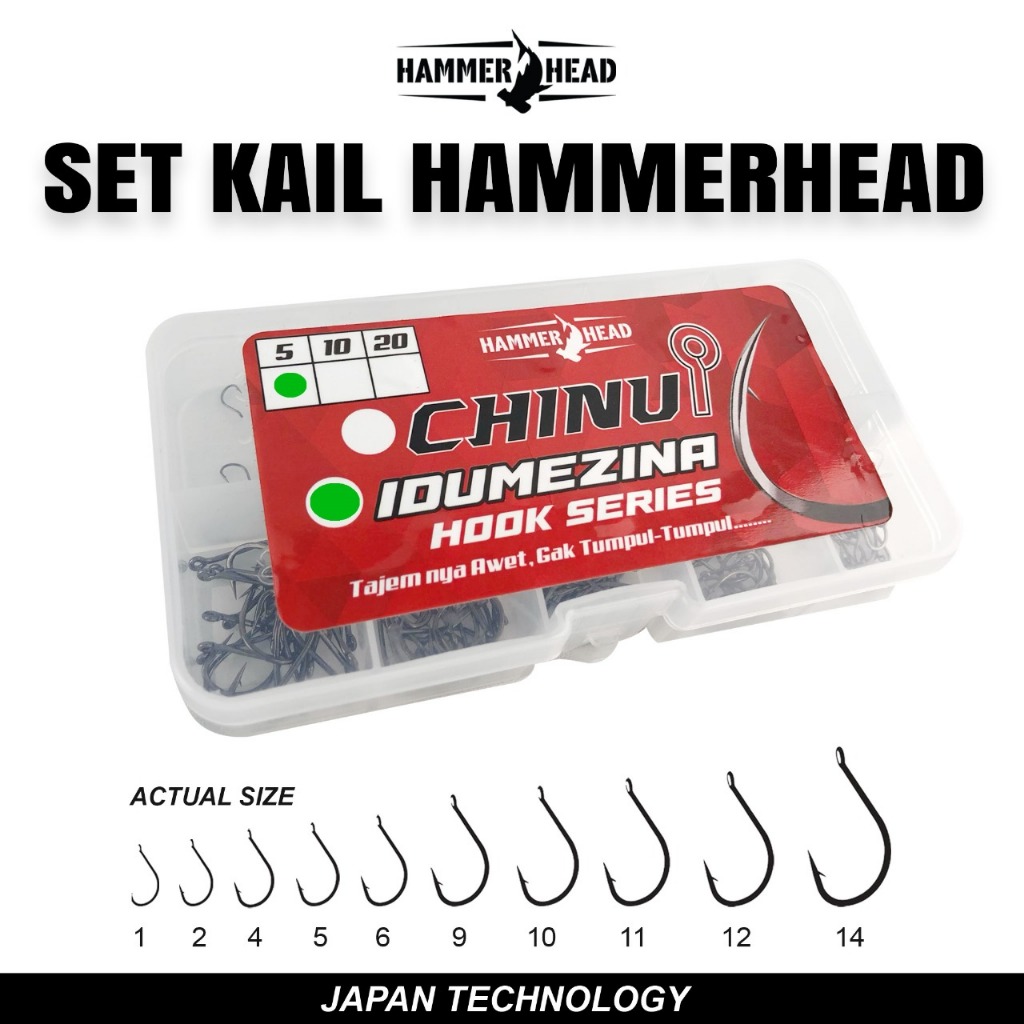 HAMMER HEAD Set Kail Super Lengkap ( SK5 ) Kail Pancing Aneka Ukuran Bahan Baja Karbon Set Japan Material Kail Serbaguna High-Carbon Steel Barbed Fishing Hook Set for Freshwater Fishin Set Kail Kolam Galatama Galapung Harian - SK5