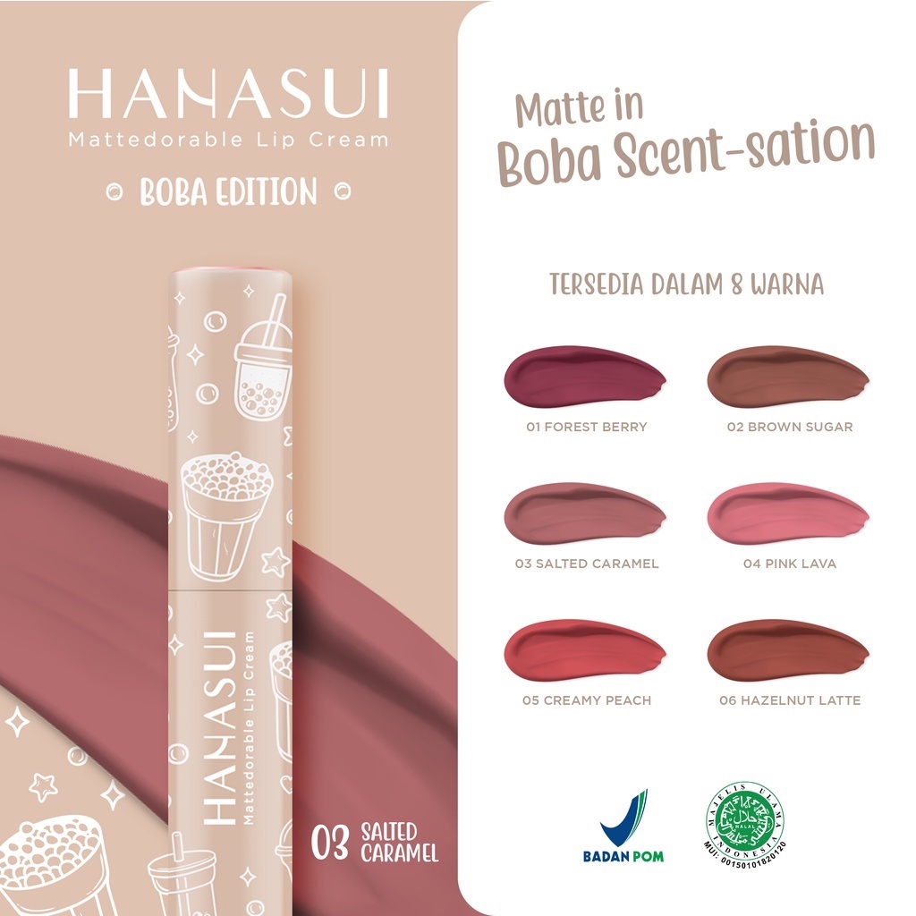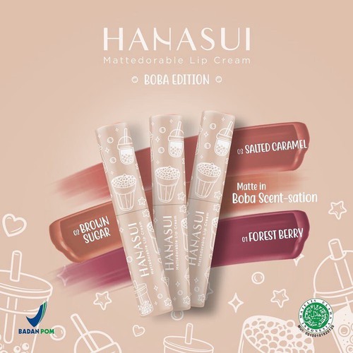 HANASUI MATTEDORABLE LIP CREAM : BOBA EDITION | MATCHA | LIP KRIM MURAH WARNA BARU CANTIK AWET TAHAN LAMA