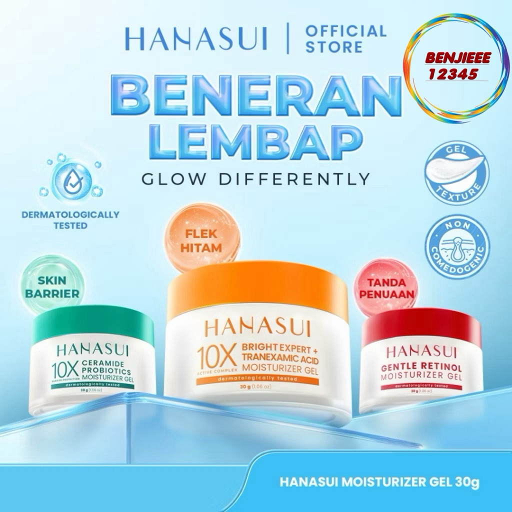 HANASUI Moisturizer Gel Series - Pelembab Gel Lembap & Mudah Menyerap - Bright Expert Mencerahkan ceramide korean probiotics gentle retinol moisturizer gel moisturizing pelembab hanasui Hanasui moisture GEL