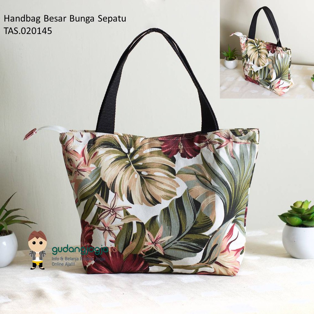 HANDBAG KANVAS / TAS JINJING KANVAS BESAR MOTIF BUNGA SEPATU - GUDANGJOGJAID