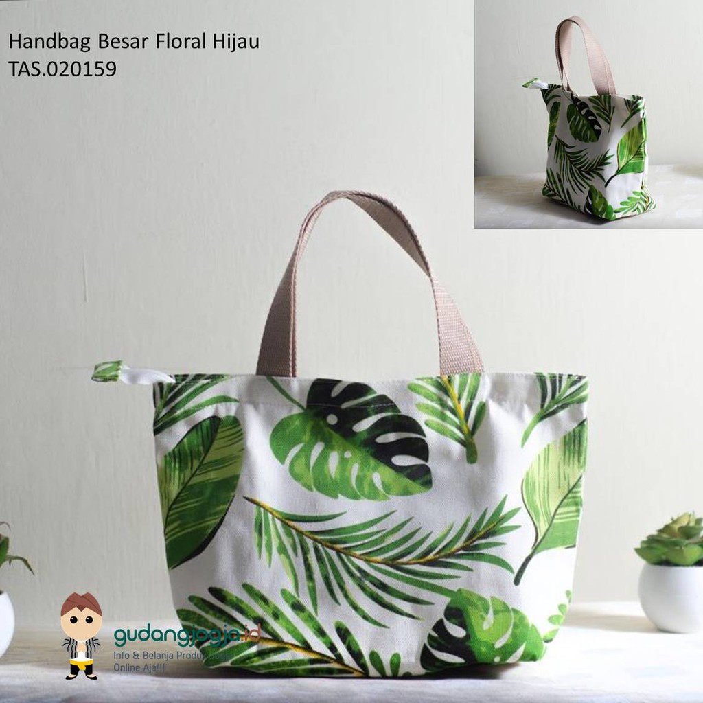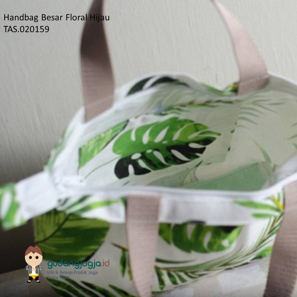 HANDBAG KANVAS / TAS JINJING KANVAS BESAR MOTIF FLORAL HIJAU / TAS KANVAS / GUDANGJOGJAID