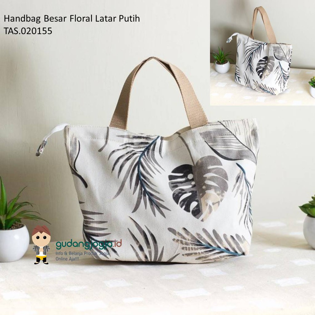 HANDBAG KANVAS / TAS JINJING KANVAS BESAR MOTIF FLORAL LATAR PUTIH / TAS KANVAS / GUDANGJOGJAID
