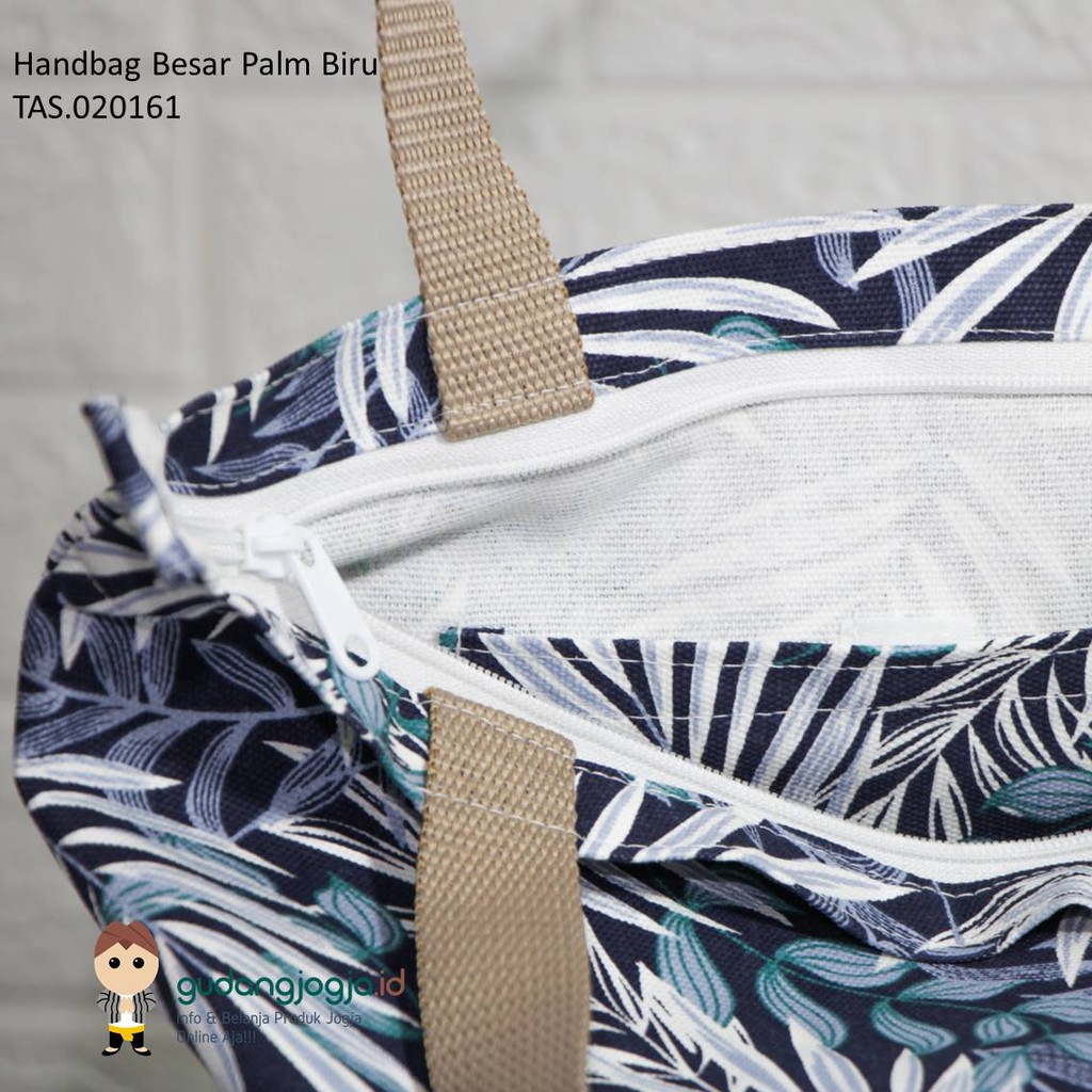 HANDBAG KANVAS / TAS JINJING KANVAS BESAR MOTIF FLORAL PALM BIRU / TAS KANVAS / GUDANGJOGJAID