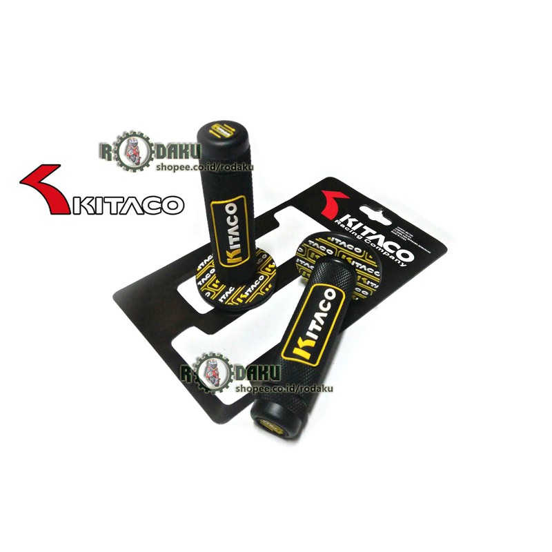 HANDGRIP MOTOR KITACO BLACK/HITAM strip KUNING