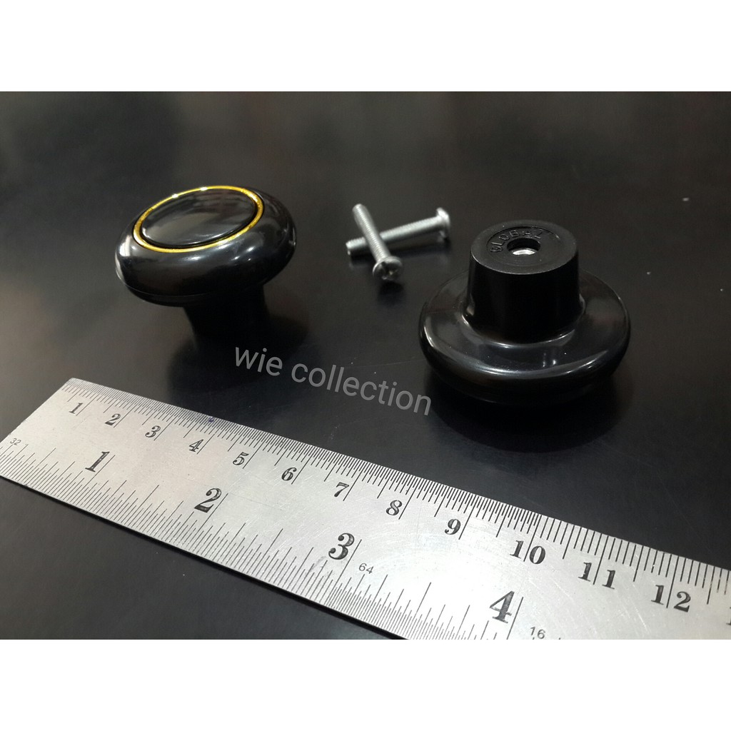 HANDLE KNOB LACI LEMARI BULAT PLASTIK HITAM GOLD / TARIKAN BULAT PLASTIK HITAM GOLD