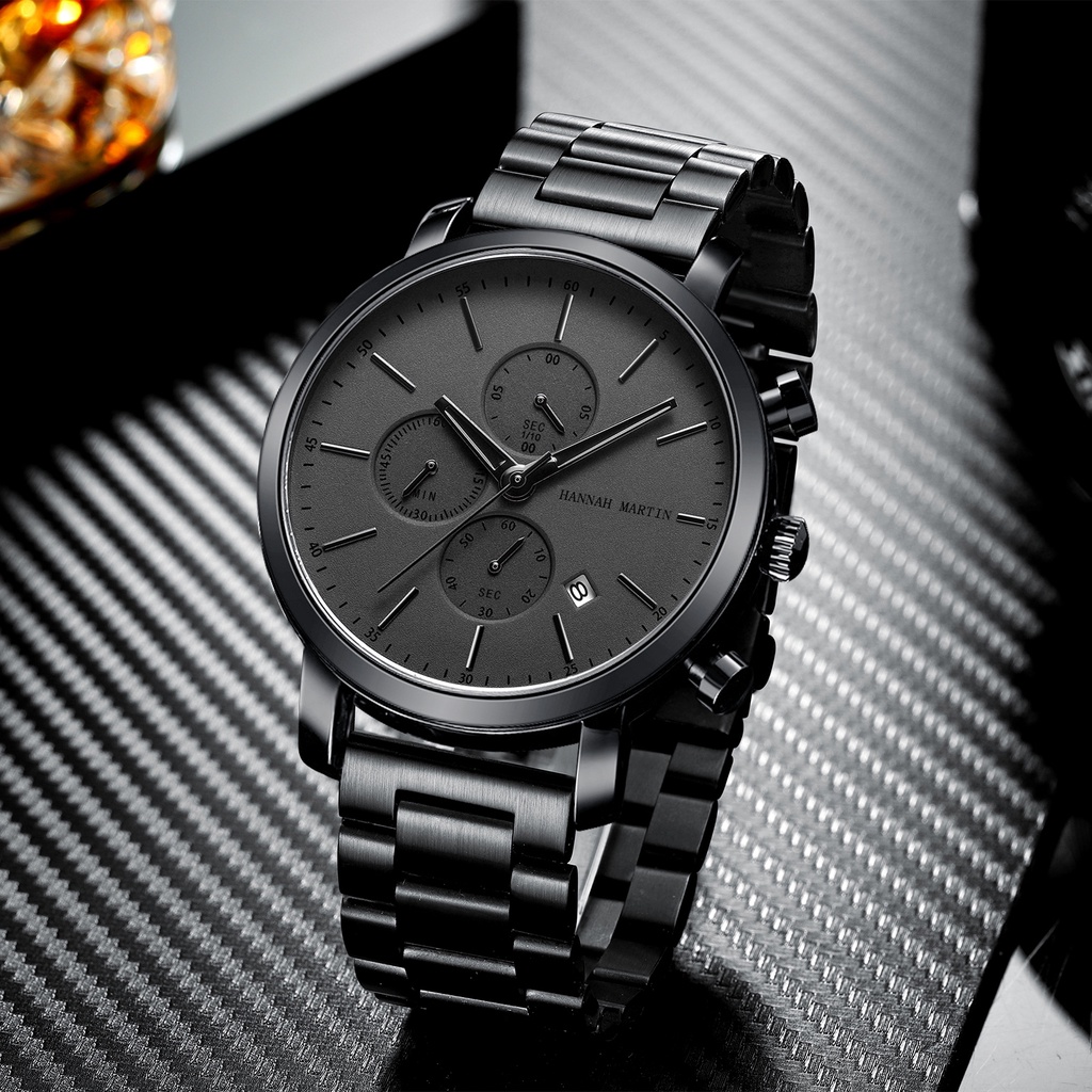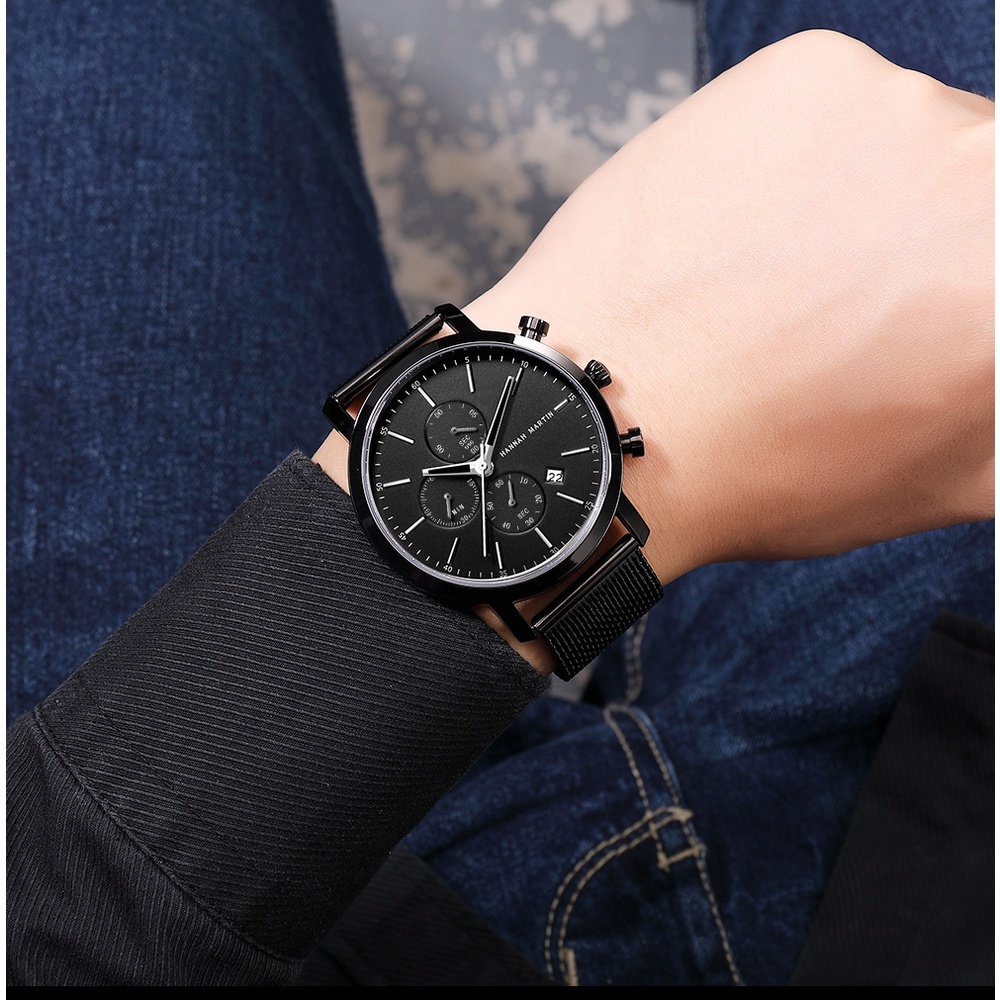 HANNAH MARTIN Jam Tangan Pria 100% Original Tahan air COWOK Kronograf Quartz Analog Laki 109G