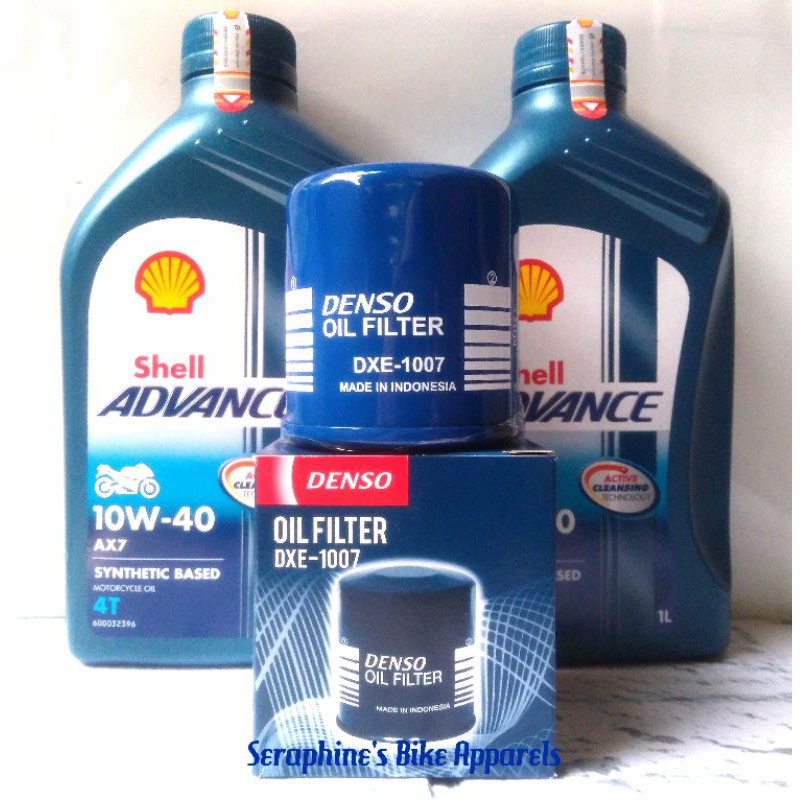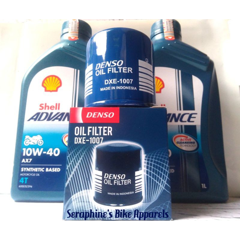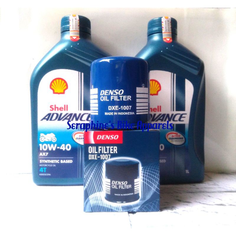 HANYA UTK PENGIRIMAN DALAM PULAU JAWA SAJA!!! PAKET OLI SHELL ADVANCE AX7 10W40 2x1L + FILTER OLI DENSO - FOR KAWASAKI NINJA 250 FI NEW NINJA 250FI Z250 FI ZX-25R VERSYS 250