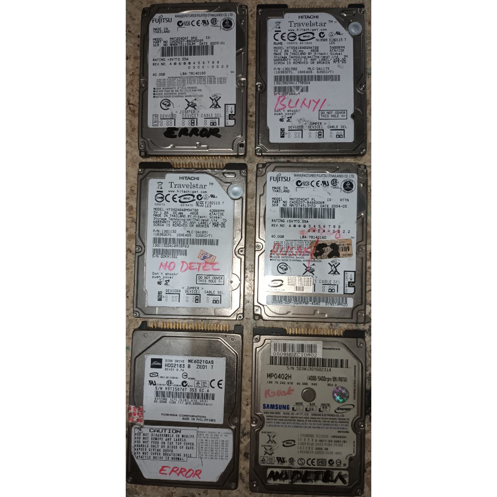HARDDISK LAPTOP (ATA/IDE) 2,5" (160 GB) KONDISI RUSAK (No Detec, No Instal, No Format, Bad Sector, dll), Merk Dominan SAMSUNG Harga Sangat Terjangkau