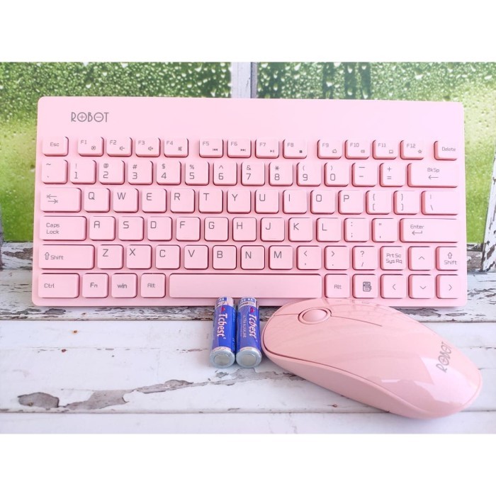 HARGA DISC - KEYBOARD + MOUSE WIRELESS MINI ROBOT KM3000 - PINK