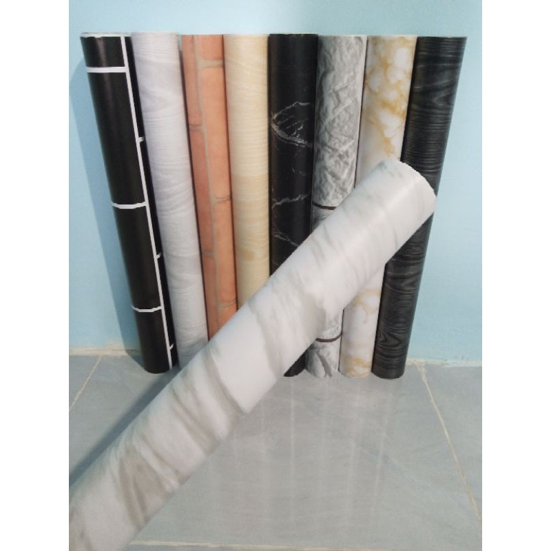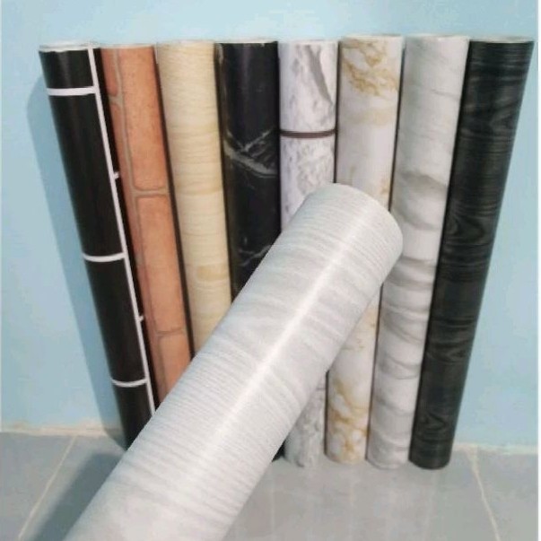 HARGA METERAN Wallsticker lemari dan meja wallpaper stiker dinding dapur walaper sticker motif marmer dan serat kayu