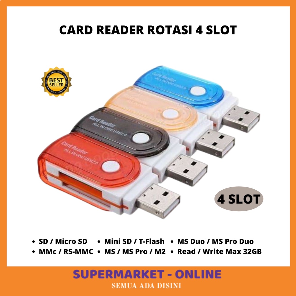 HARGA PROMO Card Reader All In One 4 Slot Rotasi Mini SD Mikro SD SD MMc RS-MMC T-Flash MS MS Pro MS Duo MS Pro Duo M2