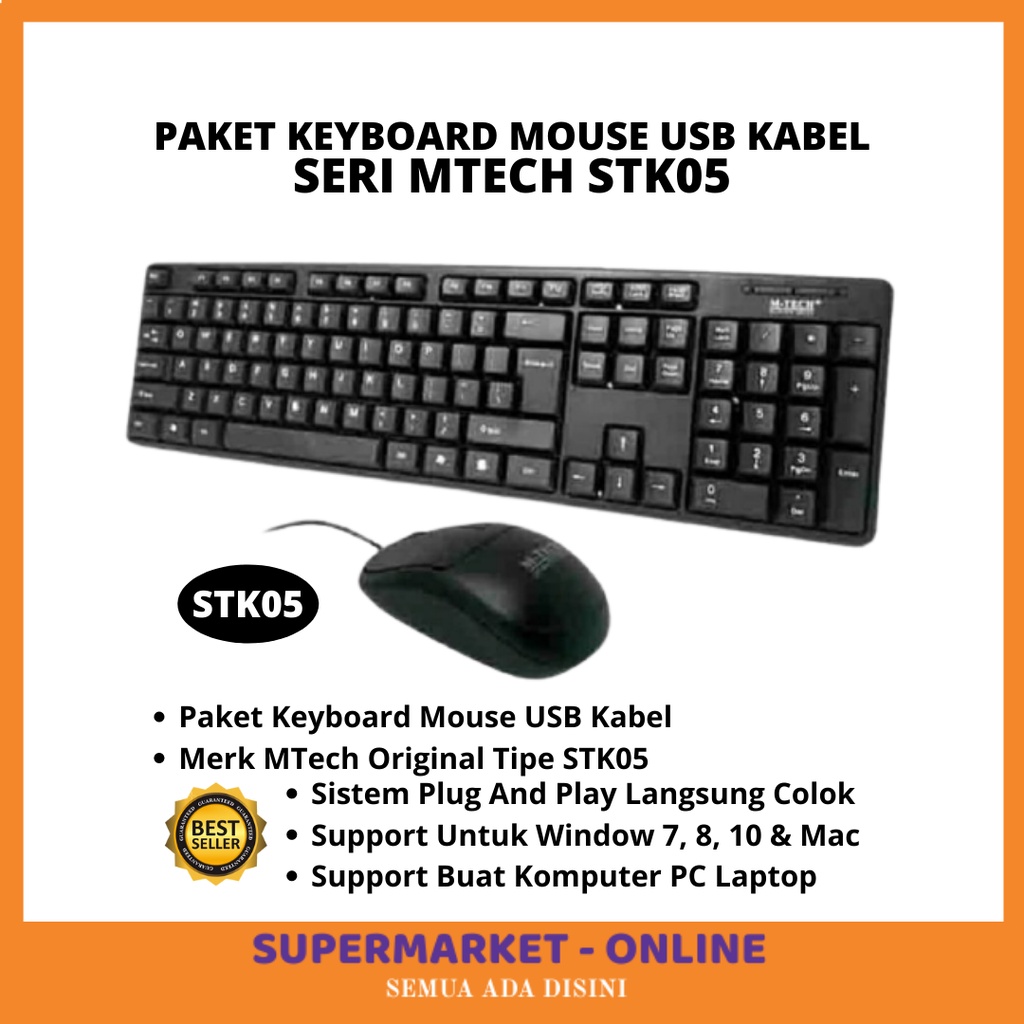 HARGA PROMO Paket Keyboard Keybord Dan Mouse USB Kabel MTECH Original Buat Komputer PC Laptop Murah Support Windows 7 8 10 Mac