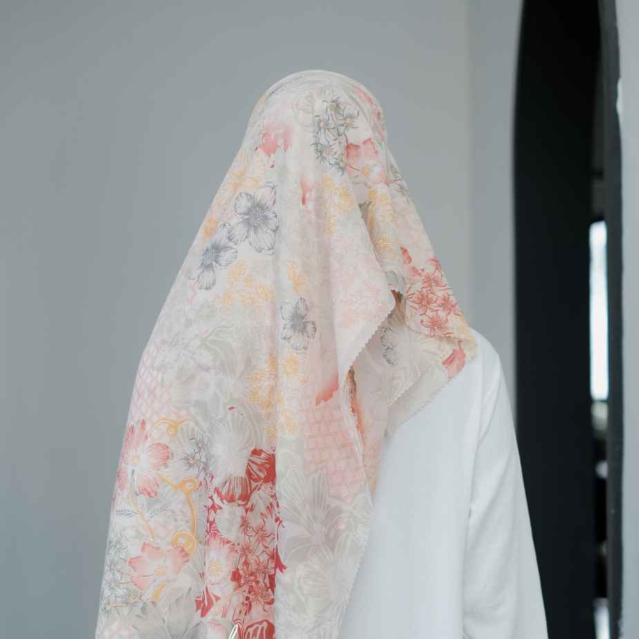 HARRAKU Hijab Voal Printing Segiempat Motif Magnolia Pink