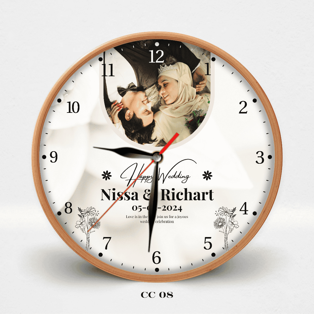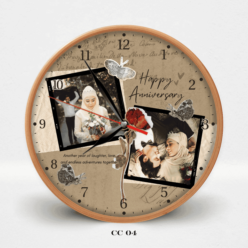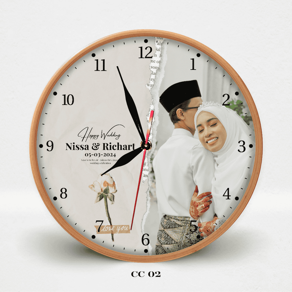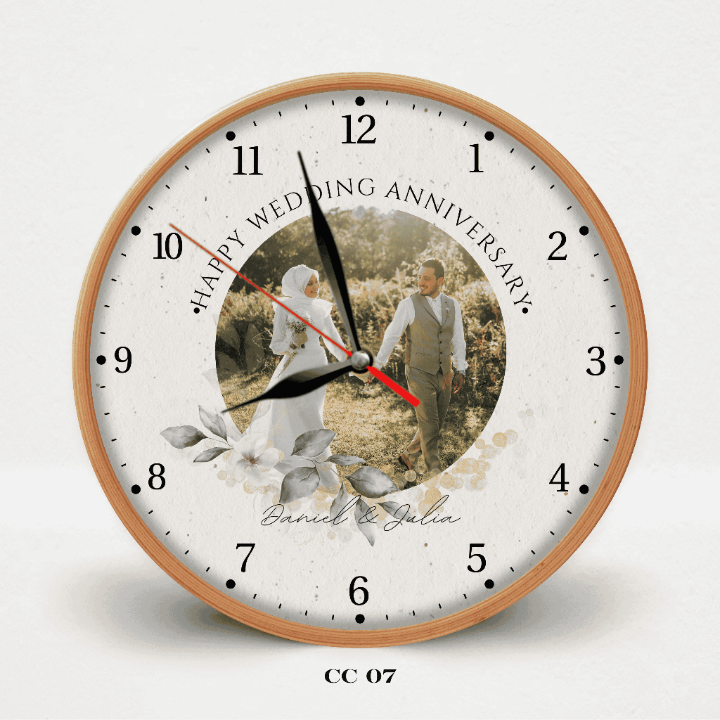HATA Jam Dinding Custom Couple Nama – Hadiah Wedding Anniversary Aesthetic Kayu Silent Movement