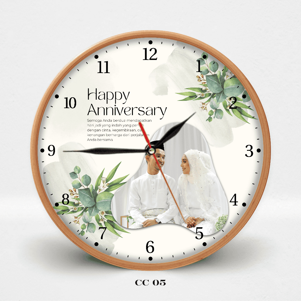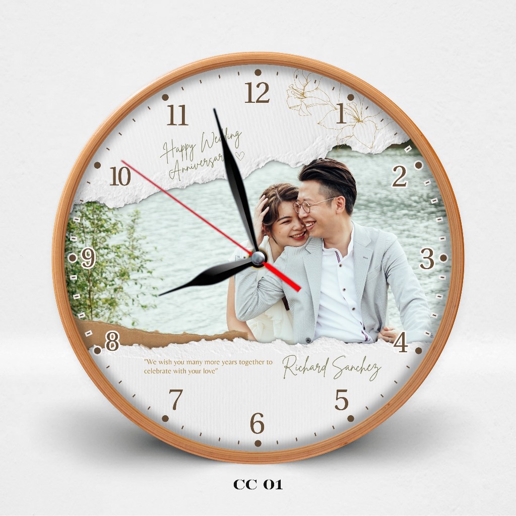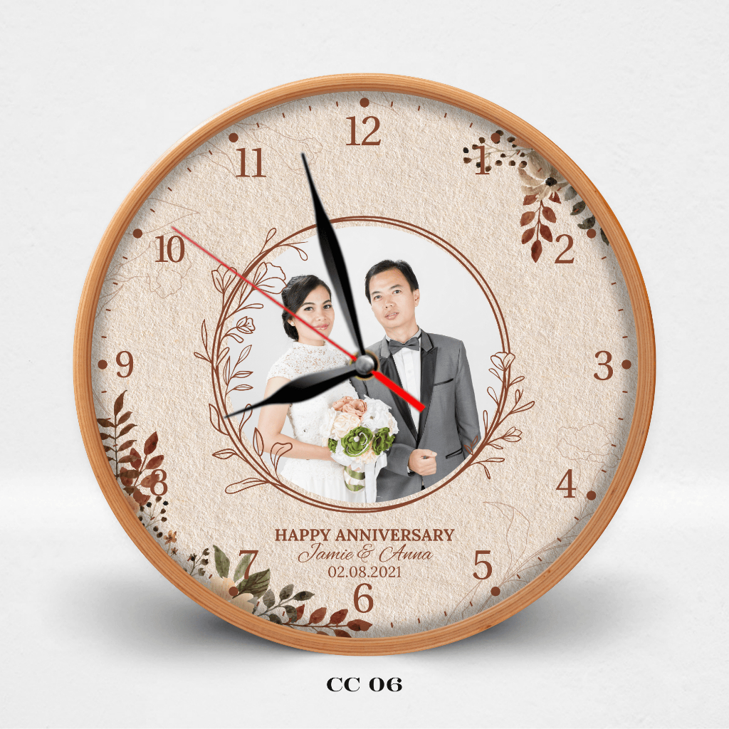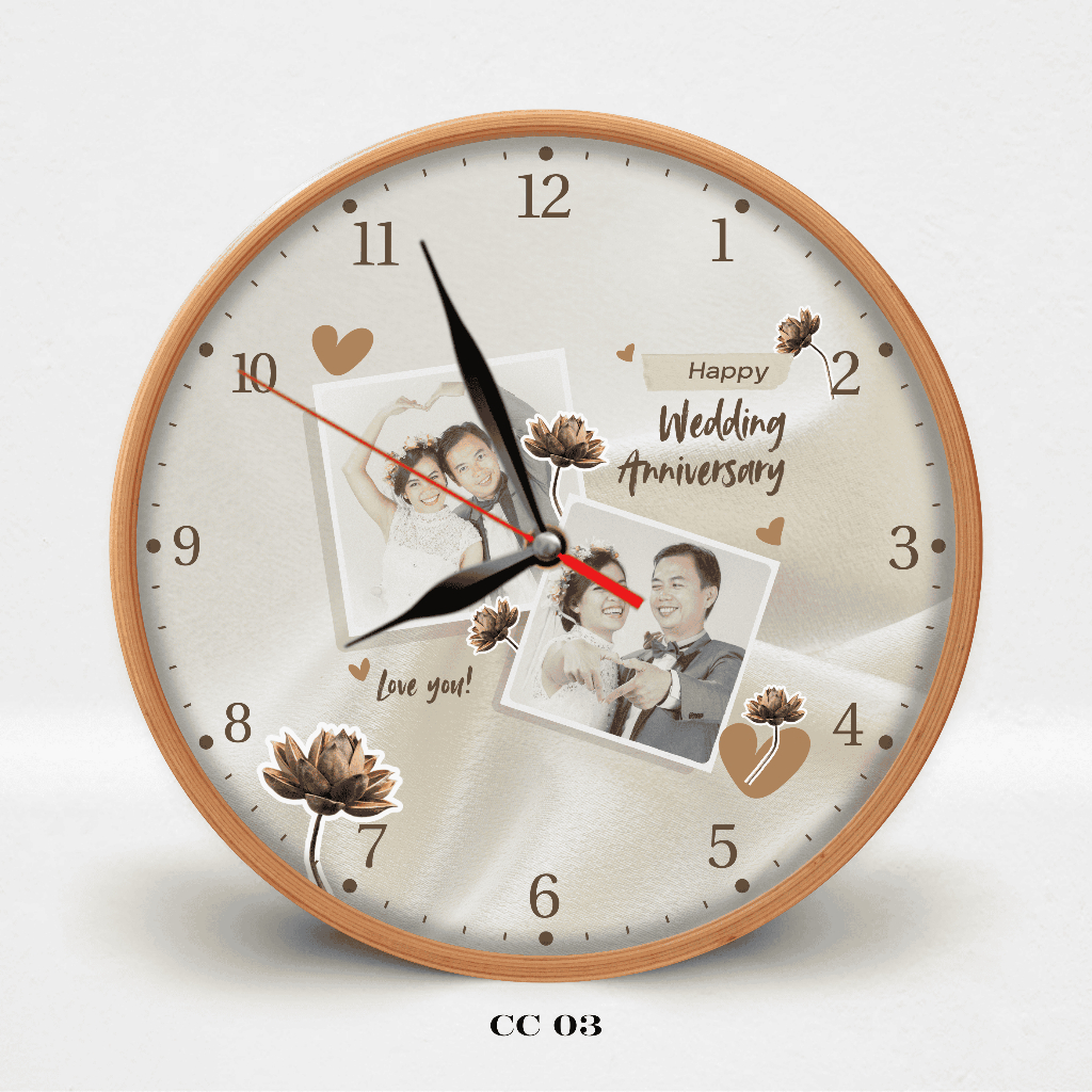 HATA Jam Dinding Custom Couple Nama – Hadiah Wedding Anniversary Aesthetic Kayu Silent Movement