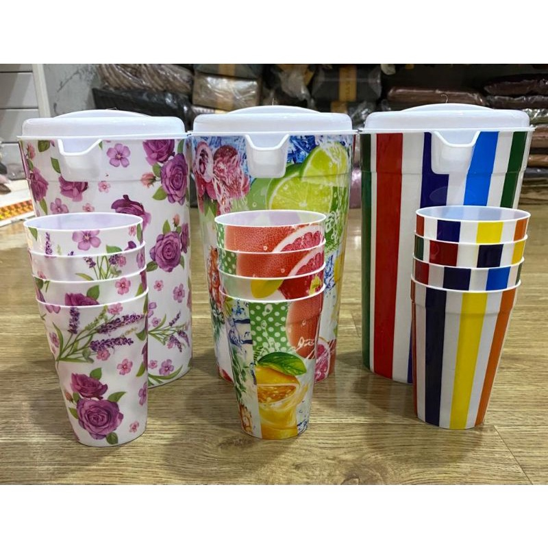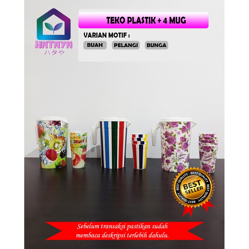 HATAYA - TEKO PLASTIK + 4 MUG/TEKO PLASTIK/TEKO SET / TEKO MUG/TEKO STAINLESS/TEKO ES/ESKAN/ESKAN MOTIF/ESKAN JUMBO/TEKO MOTIF/TEKO KEMBANG/ESKAN SET/TEKO SET KEMBANG/TEKO PLASTIK MOTIF/TEKO PLASTIK BUNGA/TEKO GELAS
