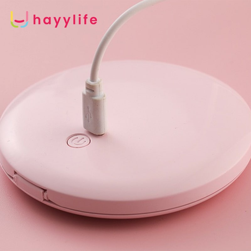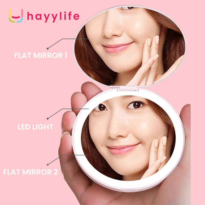 HAYYLIFE Cermin Rias MINI Lampu LED Portabel Dapat Dilipat Rechargeable Warna PINK HL-BCB557