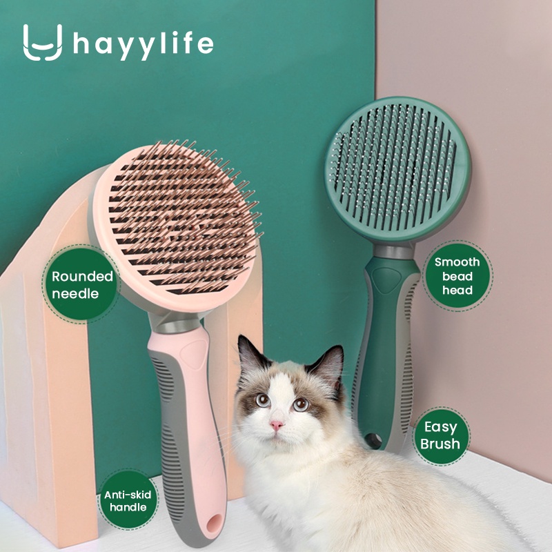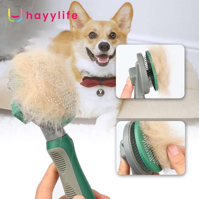 HAYYLIFE Sisir Bulu Hewan Peliharaan Anjing Kucing Dengan Fitur Tombol Pemisah HL-HAB696