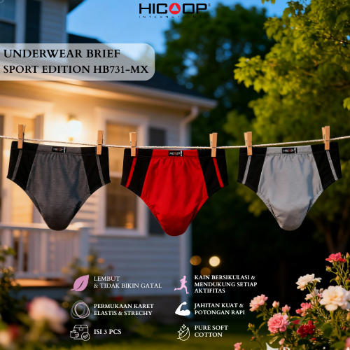 Hicoop - Sport Underwear Brief - Celana Dalam Sport Pria - Merah/Abu/Hitam - Isi 3 Pcs - HB731-MX