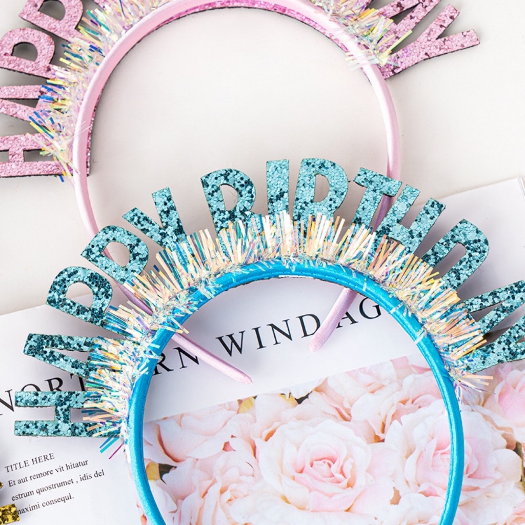 HC Bando Happy Birthday Glitter Rumbai Bando Gliter Pesta Ulang Tahun Aksesoris Pesta Acara Party Hadiah